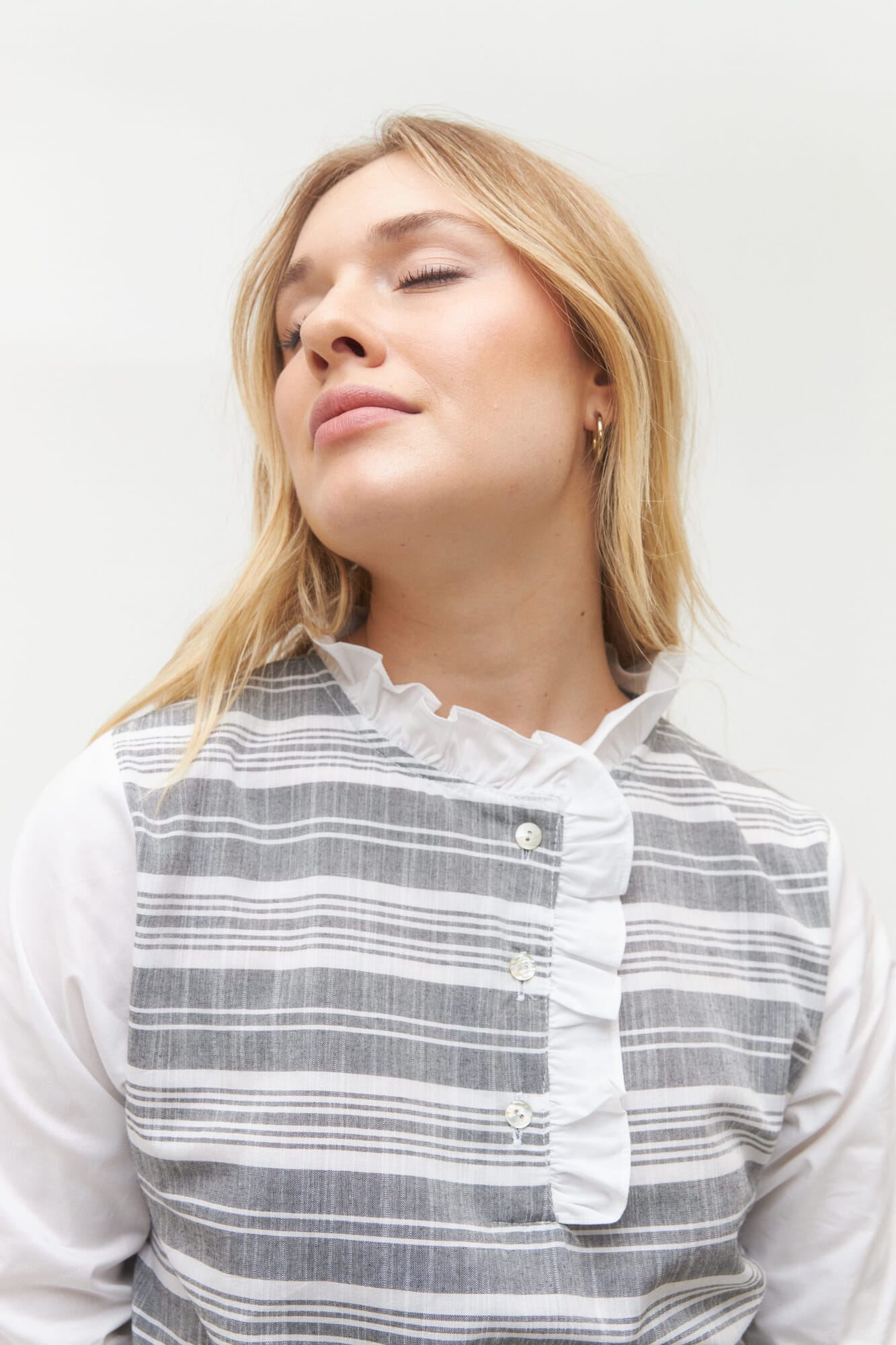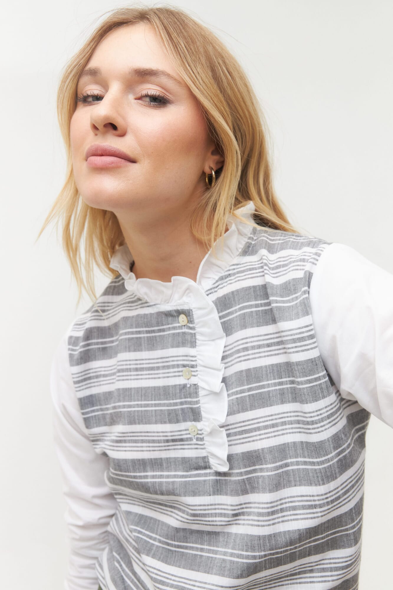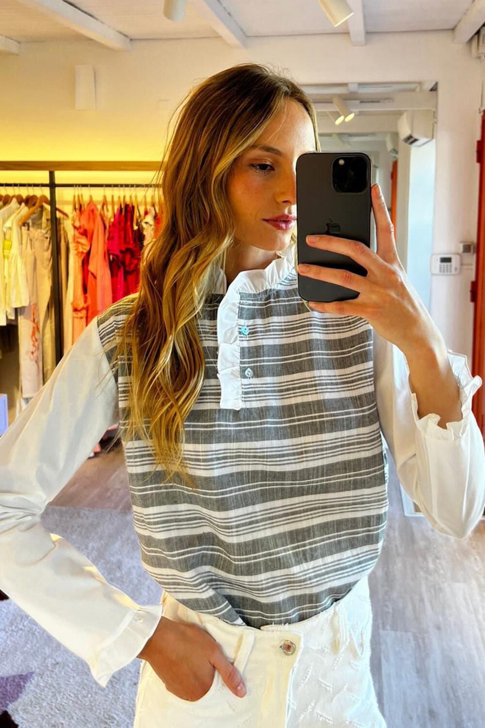 Eleva tu día con nuestra blusa Indie, diseñada para destacar en cualquier ocasión. Con un elegante volado en el cuello que añade un toque de sofisticación y feminidad, esta prenda es perfecta para quienes buscan combinar comodidad y elegancia. Ideal para reuniones casuales o salidas informales, esta remera es una opción versátil que complementará tu guardarropa con un toque de elegancia moderna.