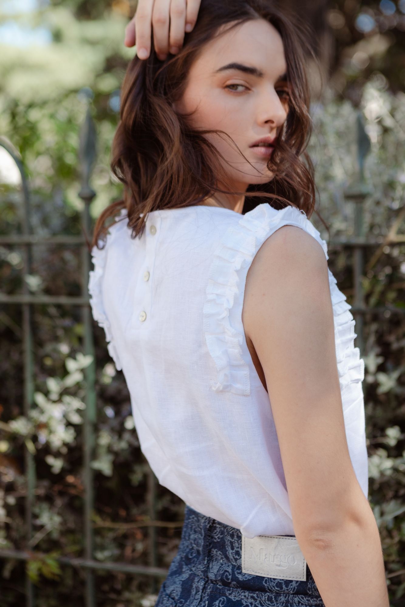 Remera de manga 3/4 confeccionada en algod贸n suave, con escote a la base                                                               detalles de volados en 3D que recorren el frente, mangas y escote. Un dise帽o muy Margo, femenino y delicado, pensado para elevar cualquier look cotidiano.