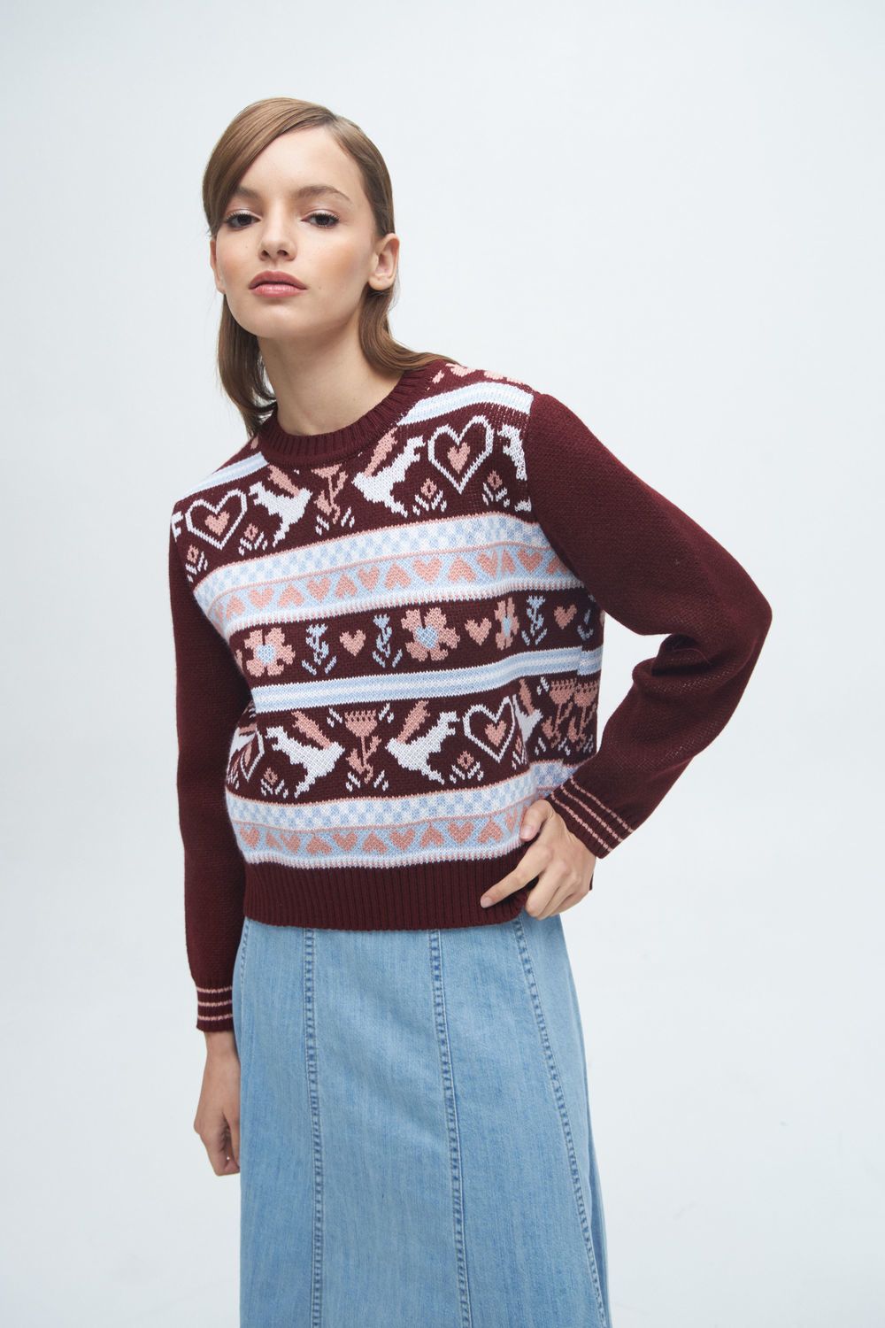 El buzo Jacquard es una prenda tejida en punto bariloche, creado para ofrecer calidez durante el invierno. Su diseño presenta los clásicos iconos de Margo. Este buzo es ideal para días fríos, ya que combina funcionalidad y estilo de manera impecable, convirtiéndose en una pieza esencial para tu guardarropa de invierno.