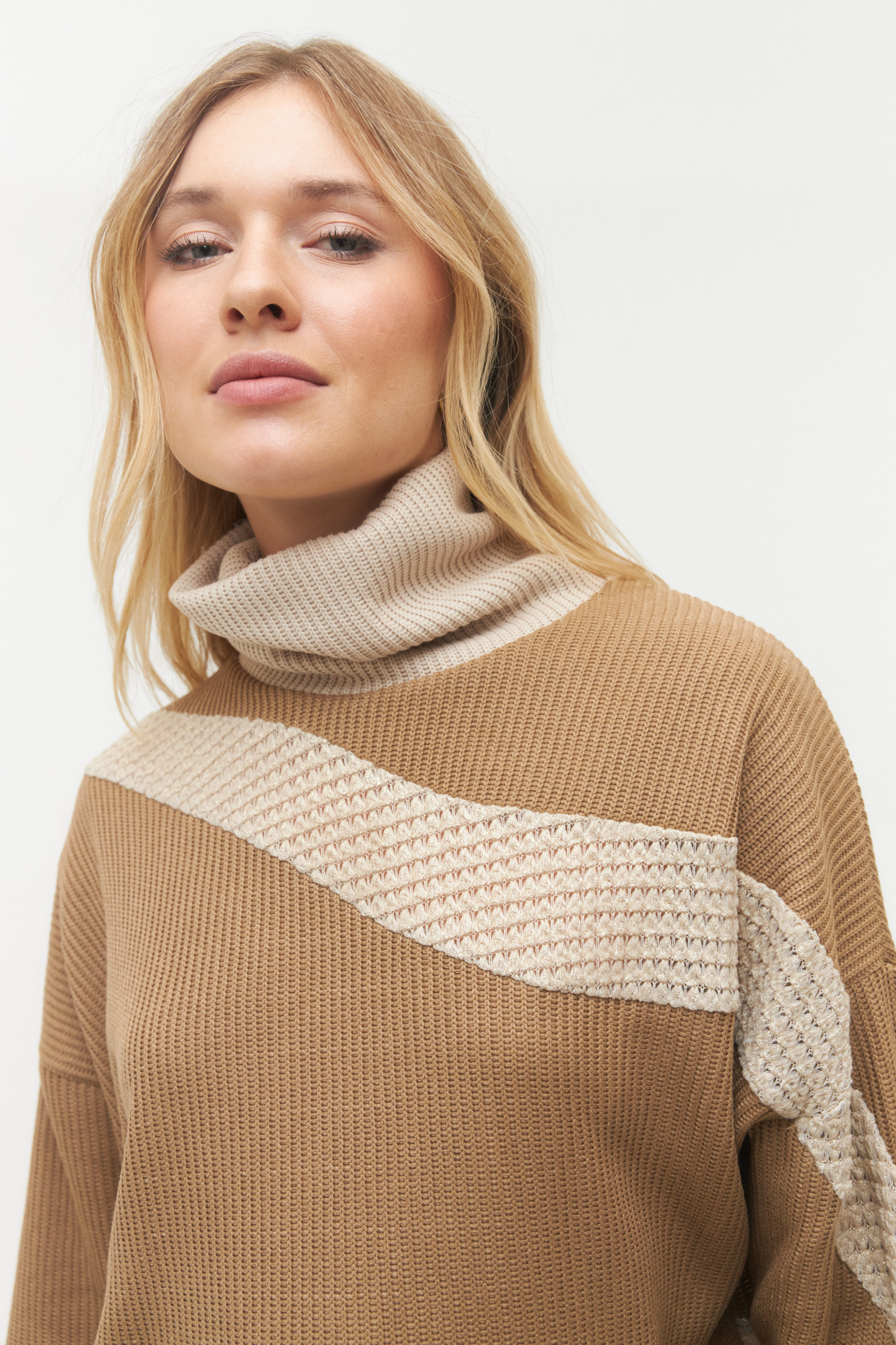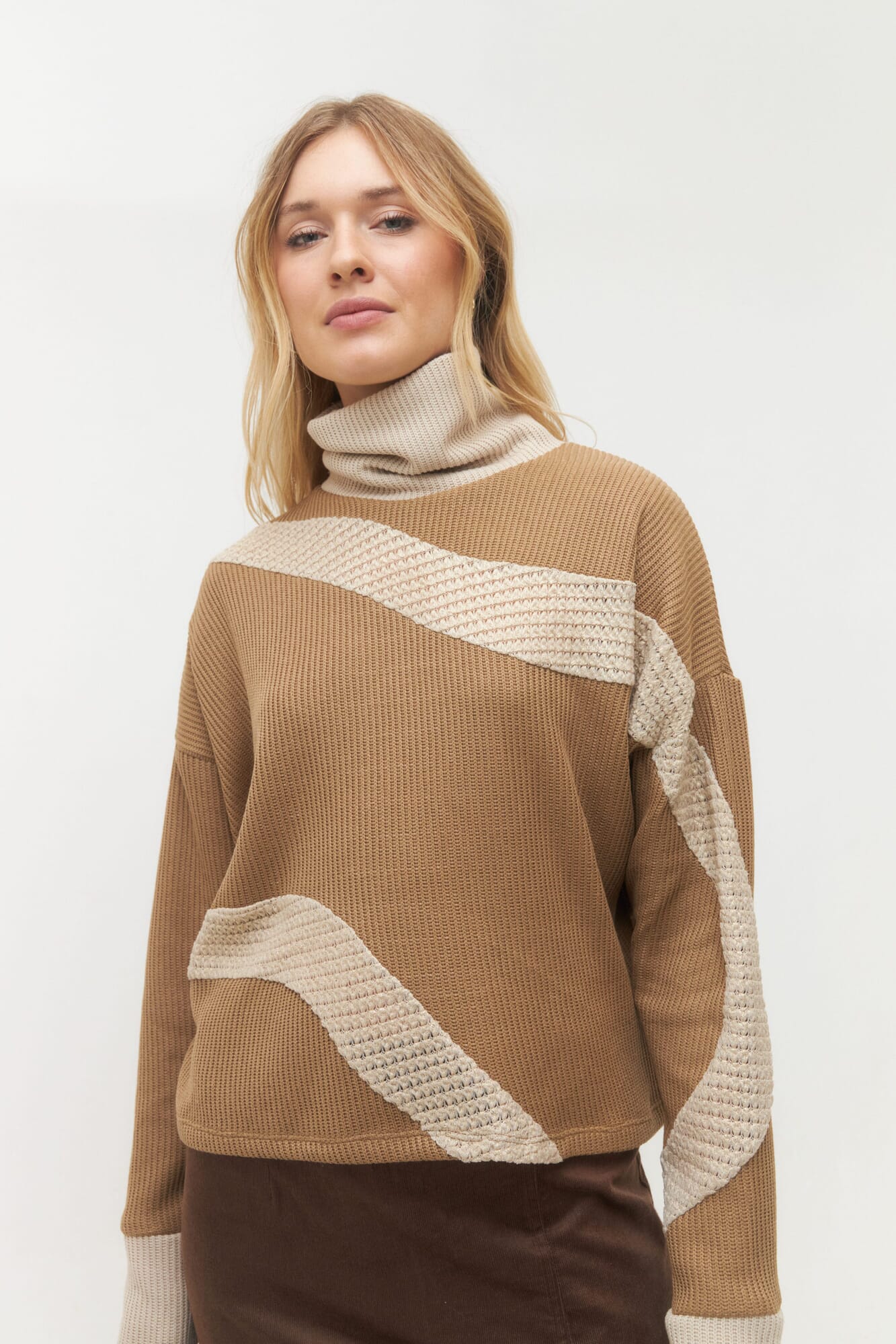 Renueva tu look urbano con este buzo moderno y sofisticado. Confeccionado en tejido texturizado , presenta originales cortes metálicos en diseño ondulado que aportan brillo y dinamismo al outfit. Su diseño de corte relajado se complementa con un cuello alto en contraste. Perfecto para lograr un look versátil y contemporáneo.