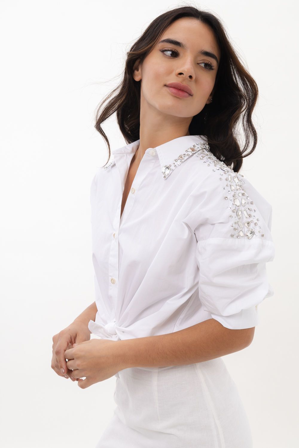 Esta camisa destaca por su elegancia y detalles cuidadosamente pensados. La manga 3/4 aporta un estilo c贸modo y vers谩til, ideal para todo tipo de climas. Los bordados en los hombros ofrecen un toque distintivo, posiblemente con motivos tradicionales o artesanales, que realzan la prenda y le dan un aire sofisticado. El cuello tradicional, por su parte, mantiene el dise帽o cl谩sico y atemporal, aportando una mayor formalidad y balance con los otros detalles de la prenda.