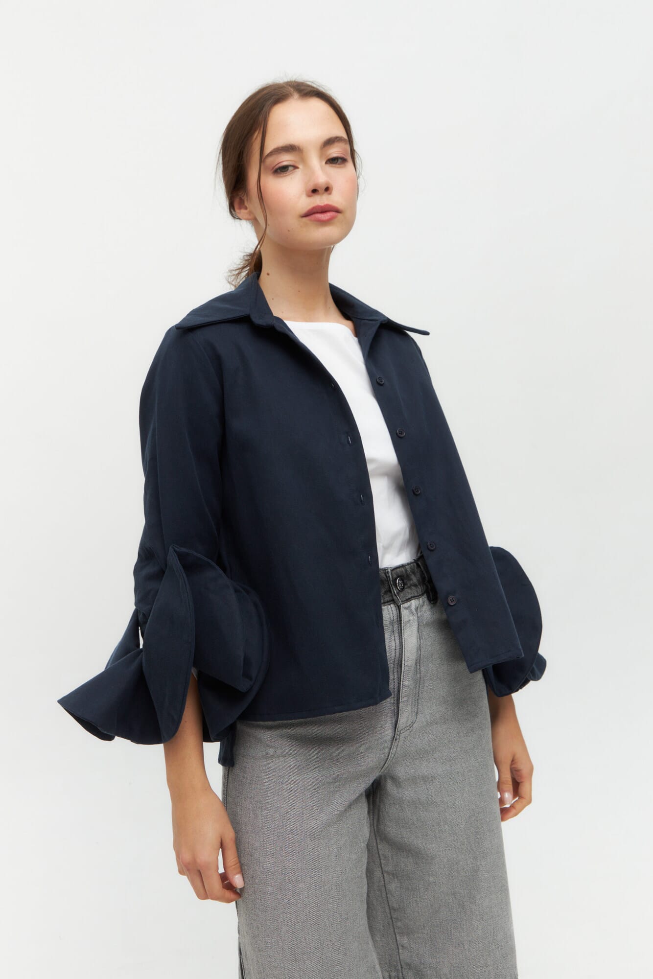 La sobrecamisa Tulip se destaca por su elegancia y el detalle de vuelos en el puño. Puede vestirte en una ocasión especial o llevarla con margo jeans para un look más casual.