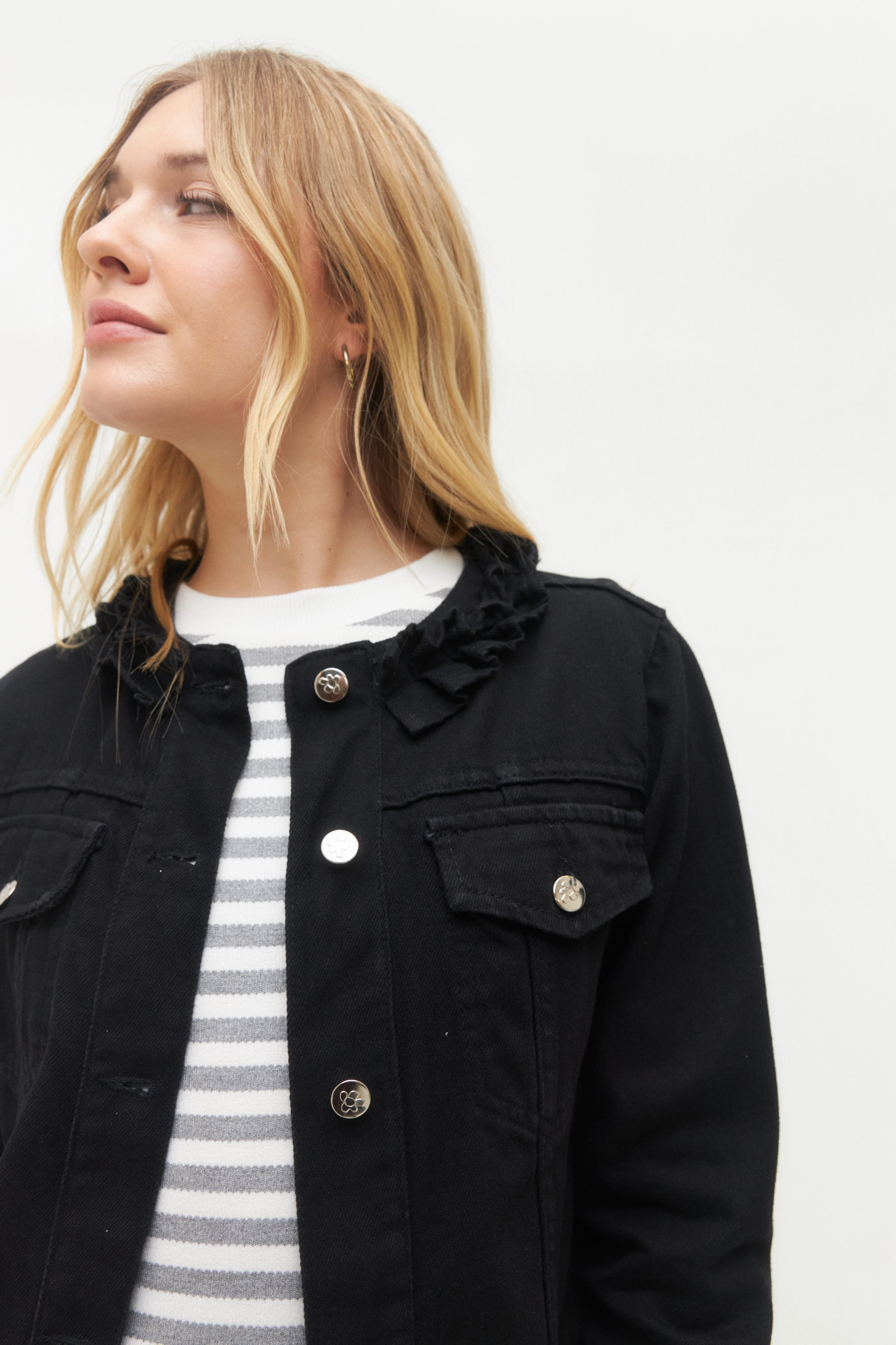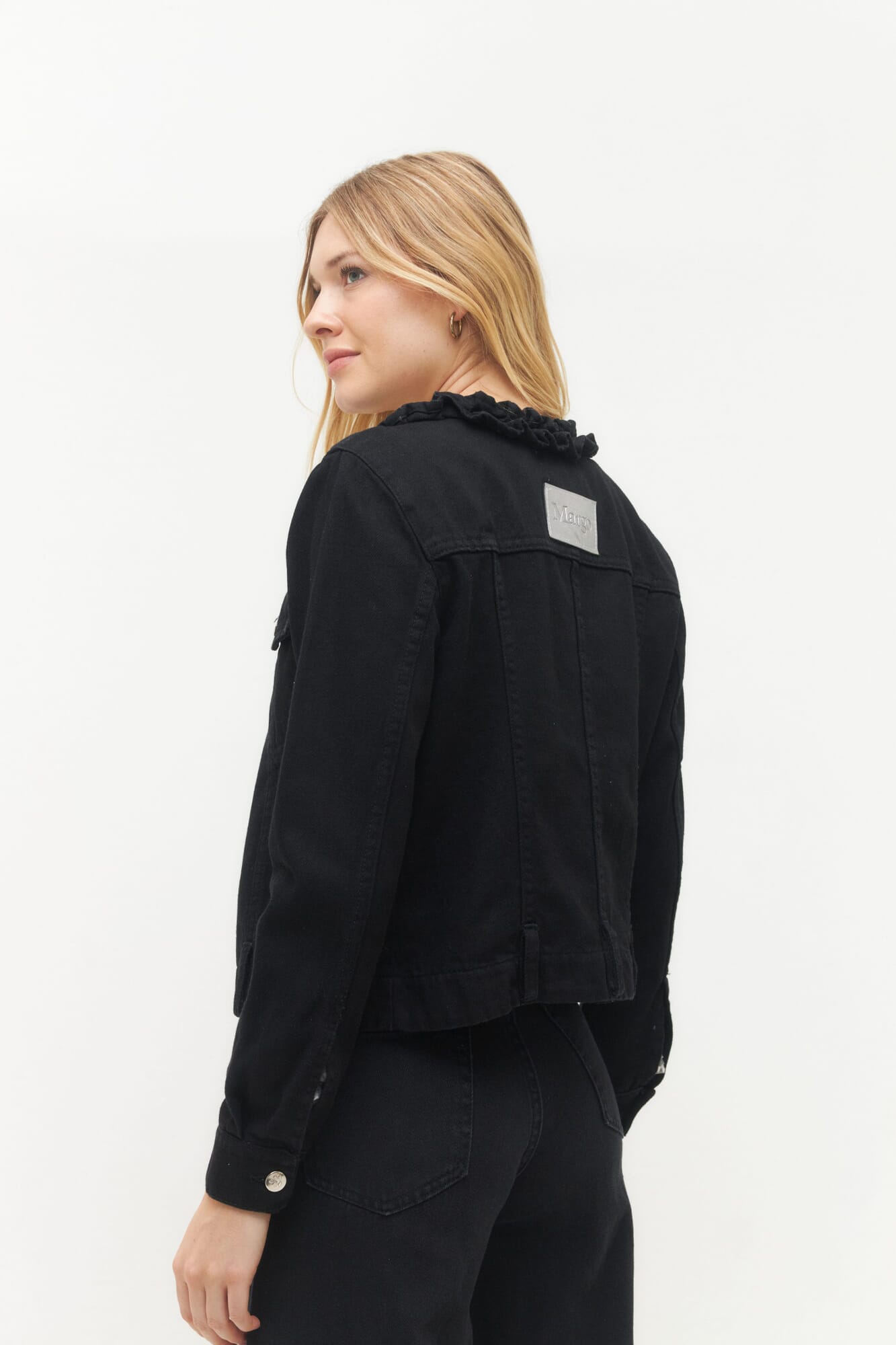 Campera de jean que se adapta a cualquier look. No solo es cómoda, sino que el detalle de los volados le da un toque único.