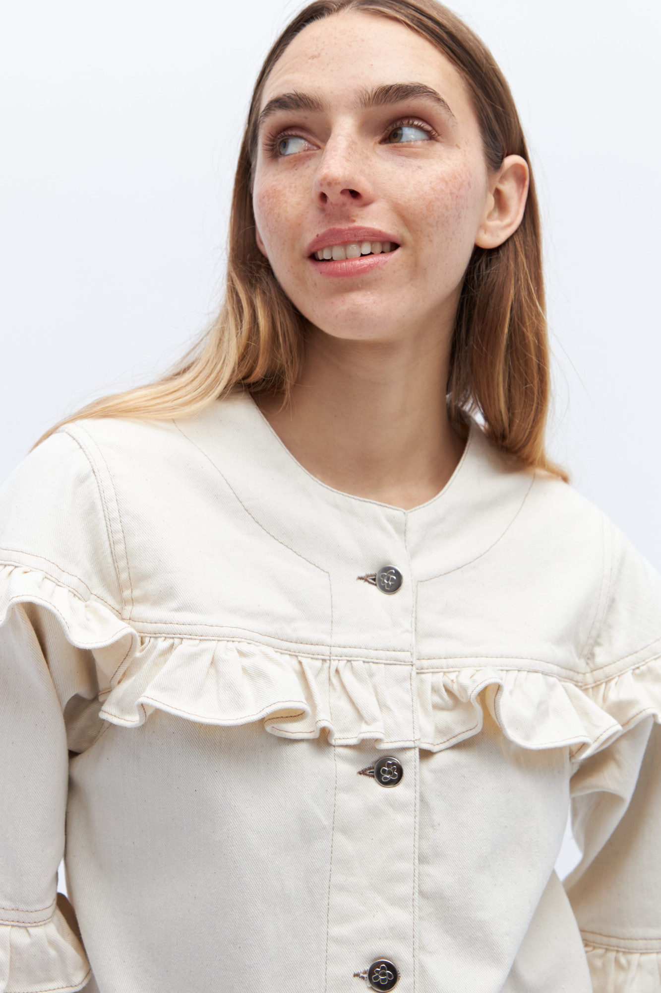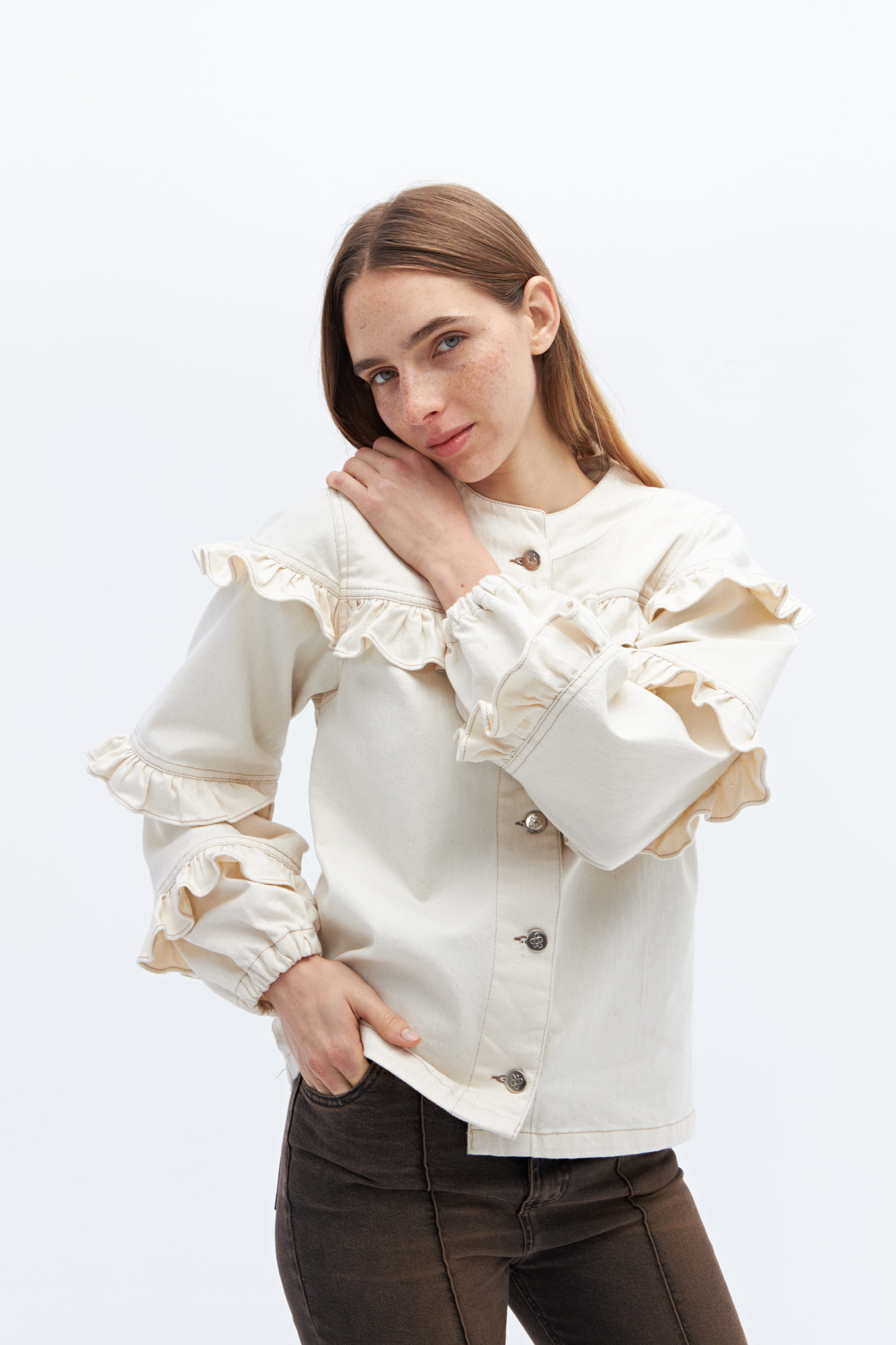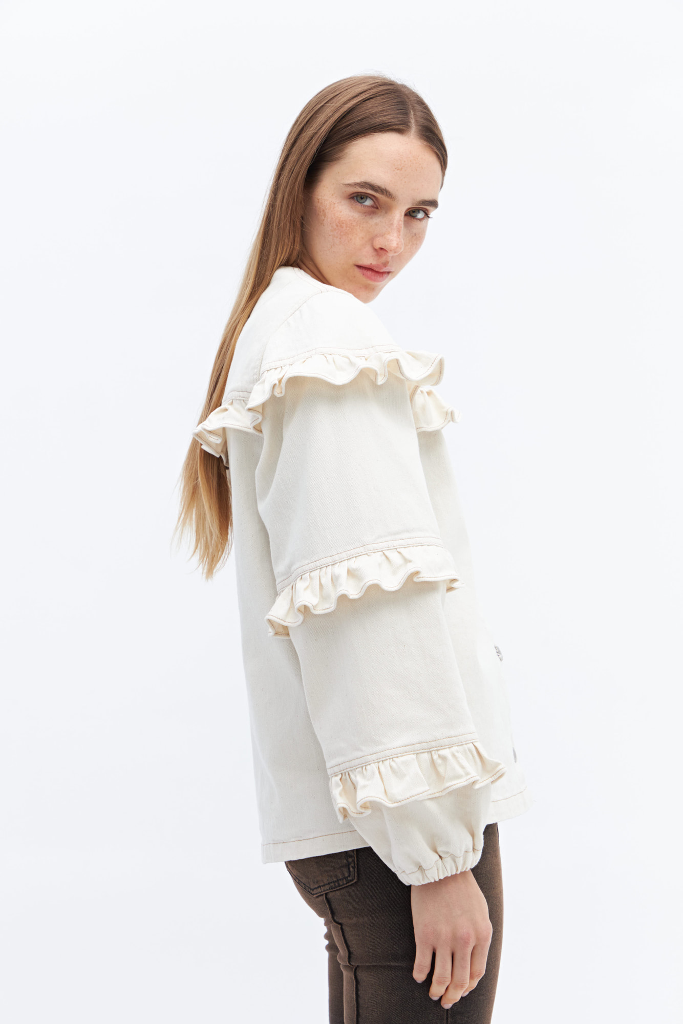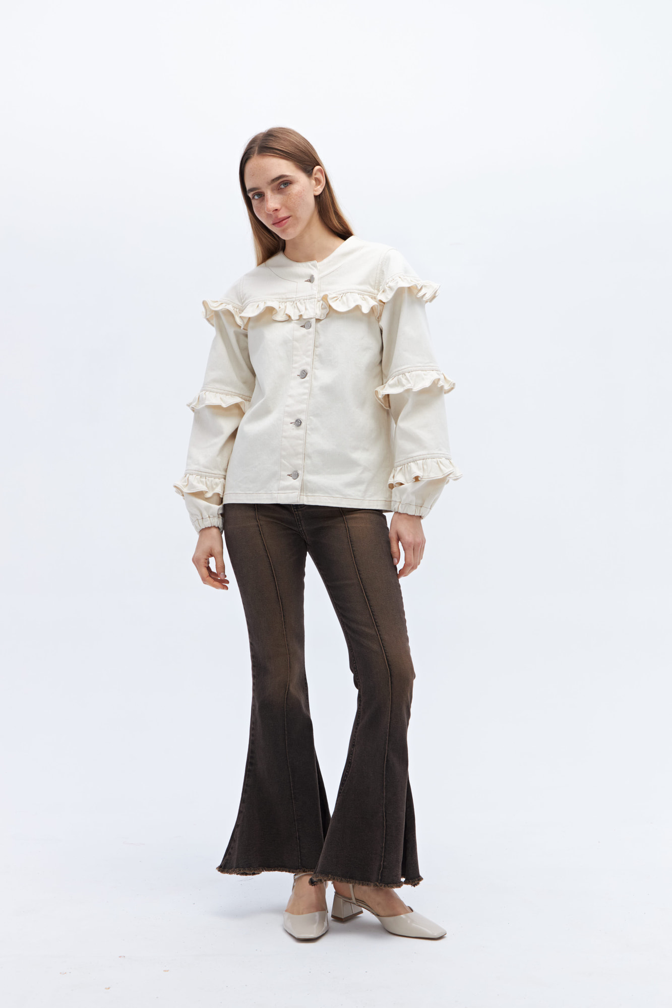 Una prenda que eleva el denim a otro nivel. La campera Zorzal combina la estructura del jean con el movimiento de volados que recorren el frente y las mangas. C贸moda, femenina y con car谩cter: perfecta para sumar textura y un toque 煤nico a cualquier look.