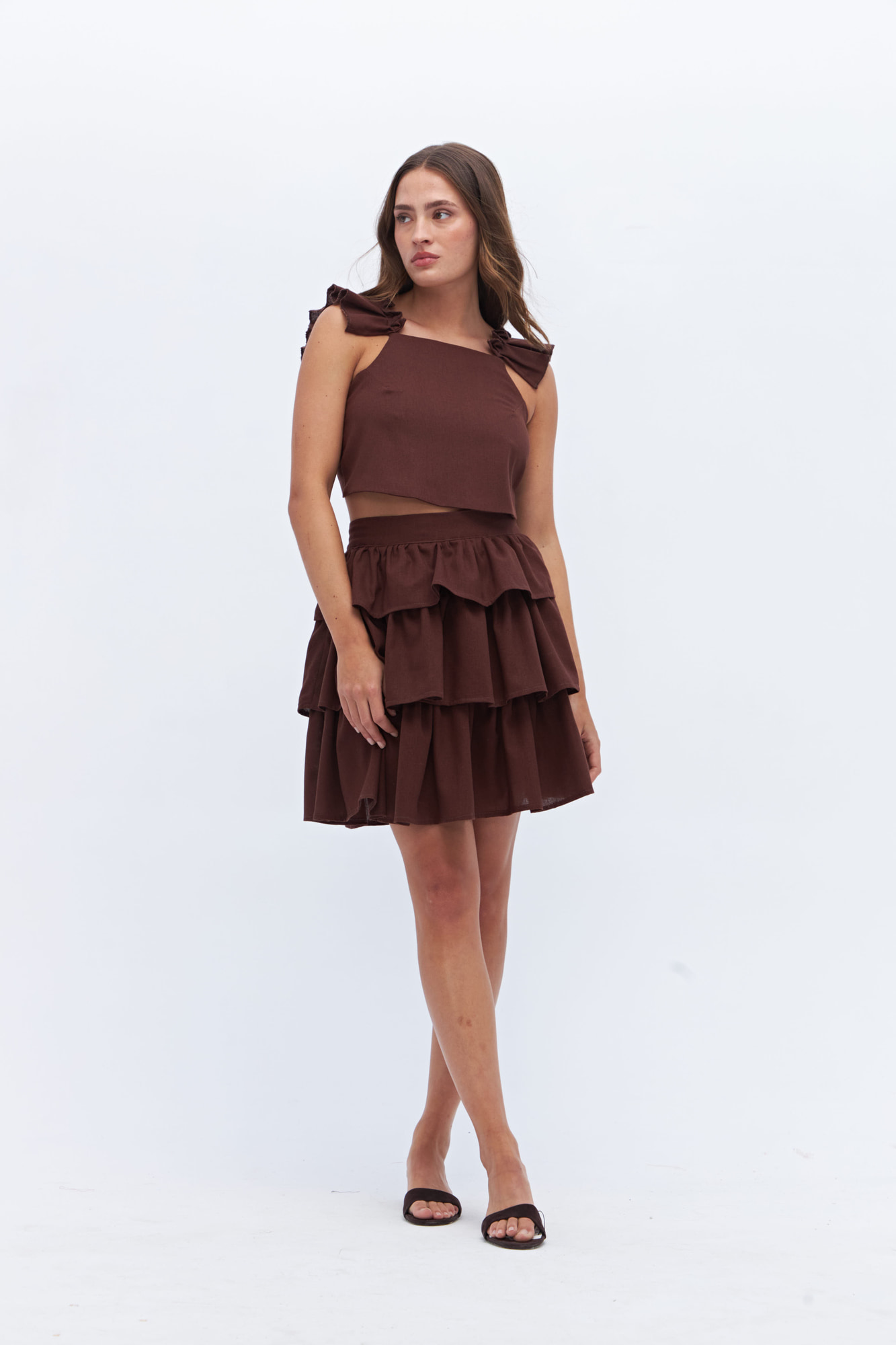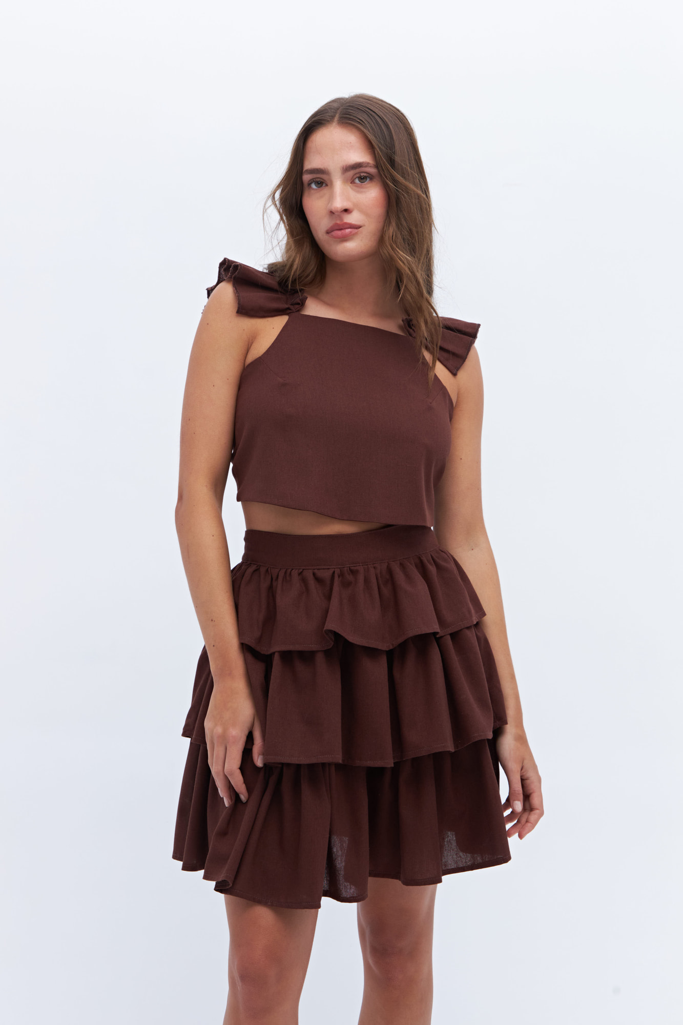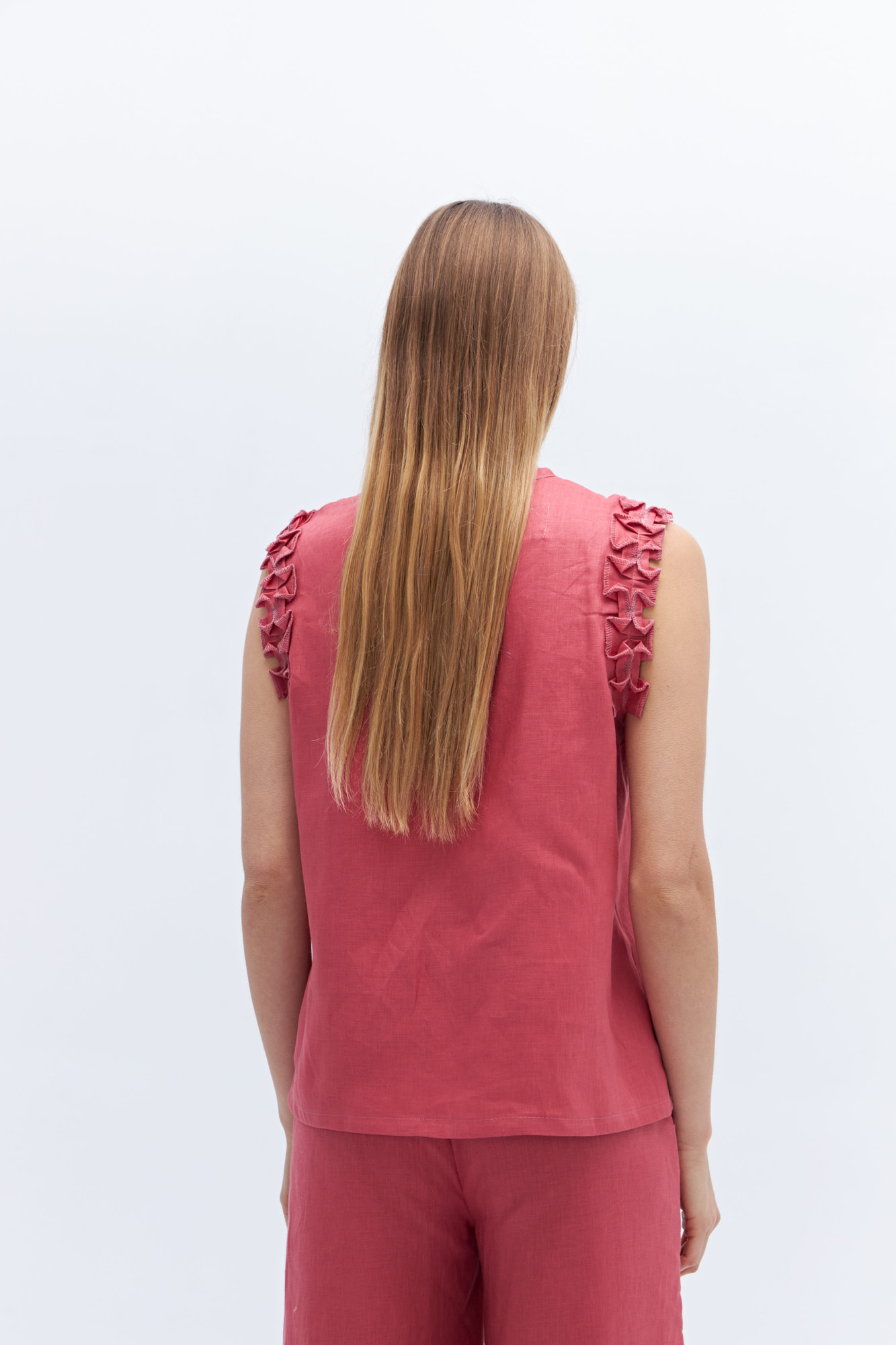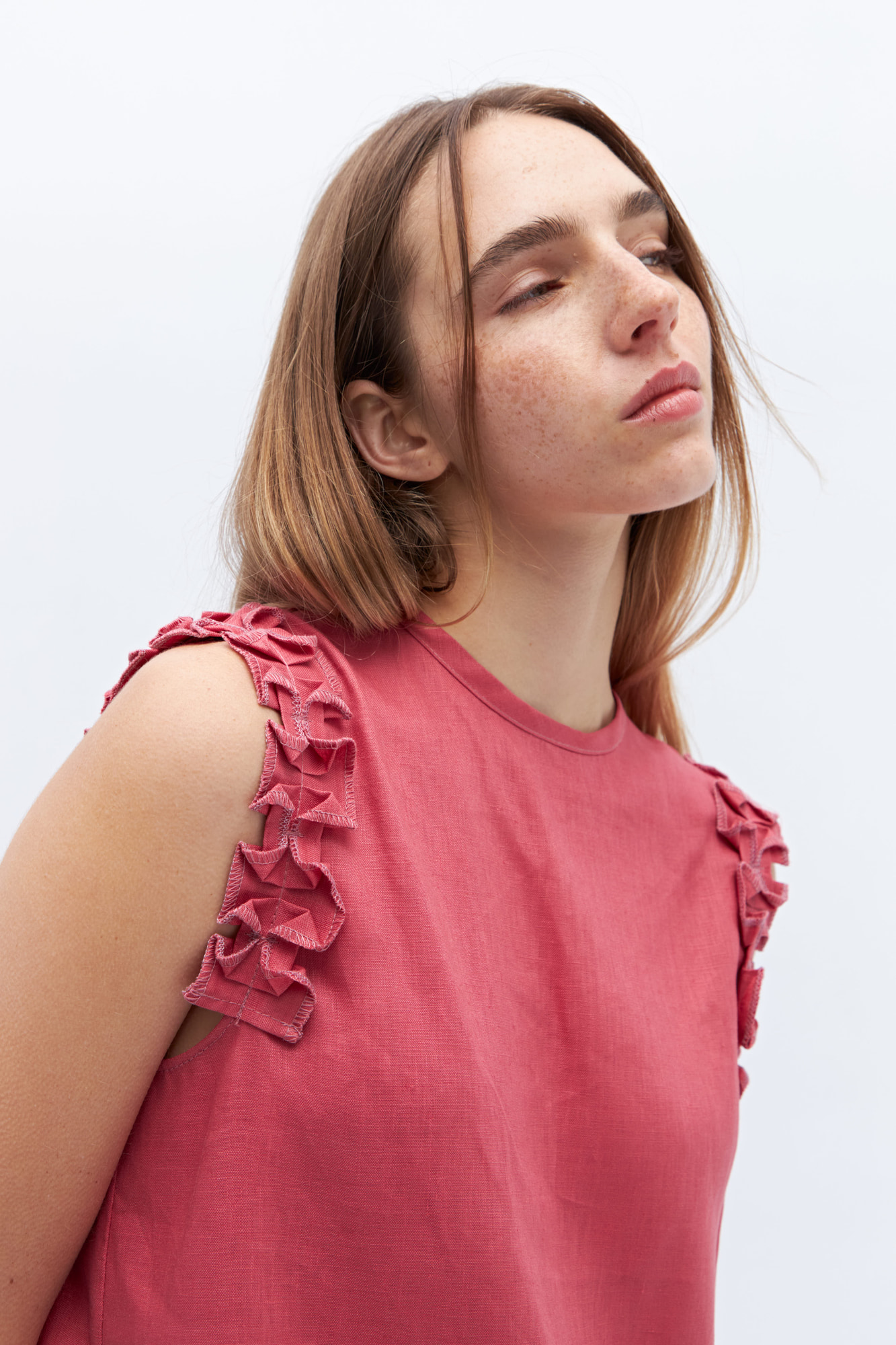 Confeccionada en 100% lino, la Musculosa Magna se distingue por los delicados volados en los hombros que aportan movimiento y sutileza a su silueta minimalista. Ligera y fresca, es una prenda que combina elegancia y naturalidad en un mismo diseño.