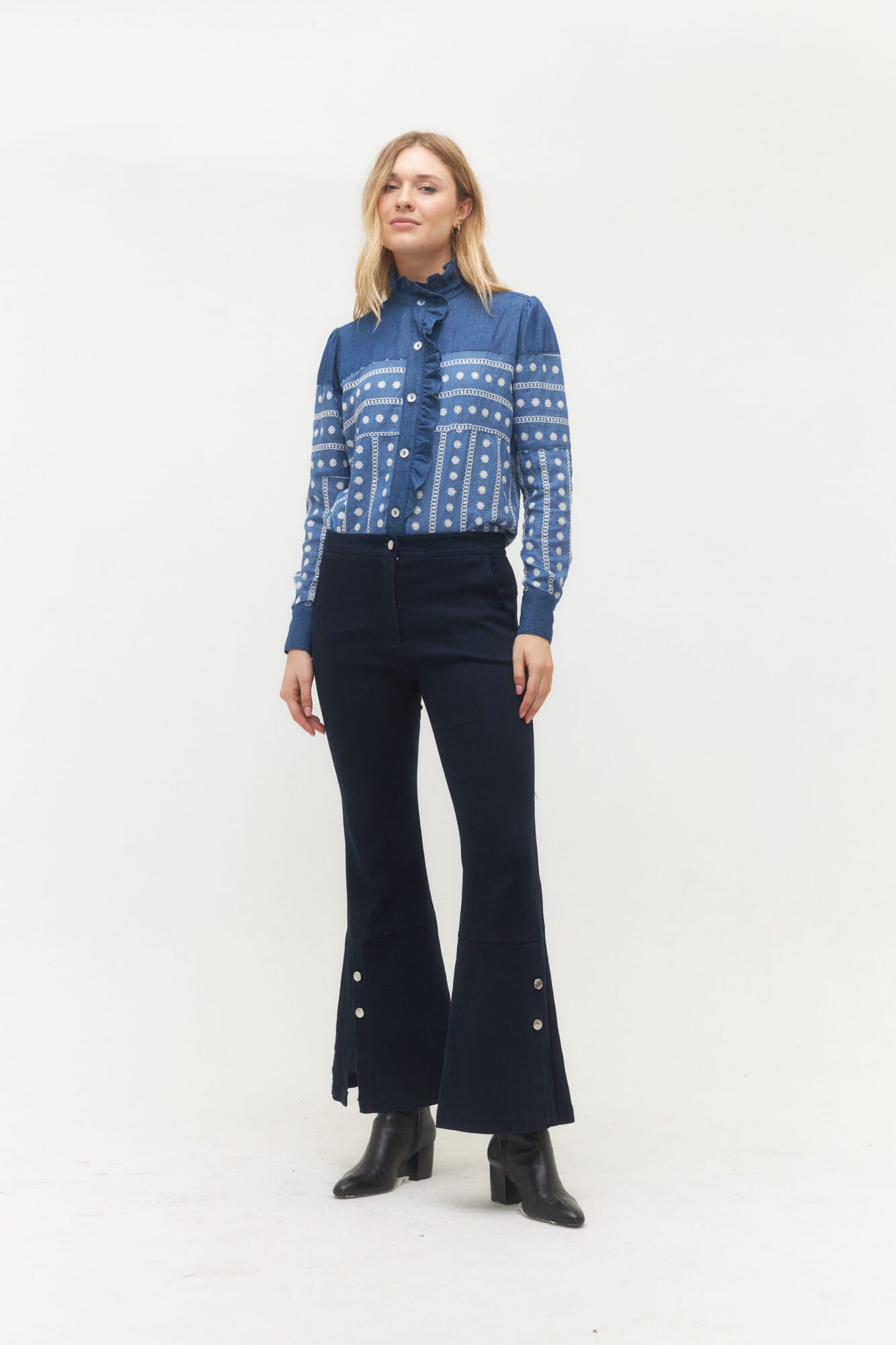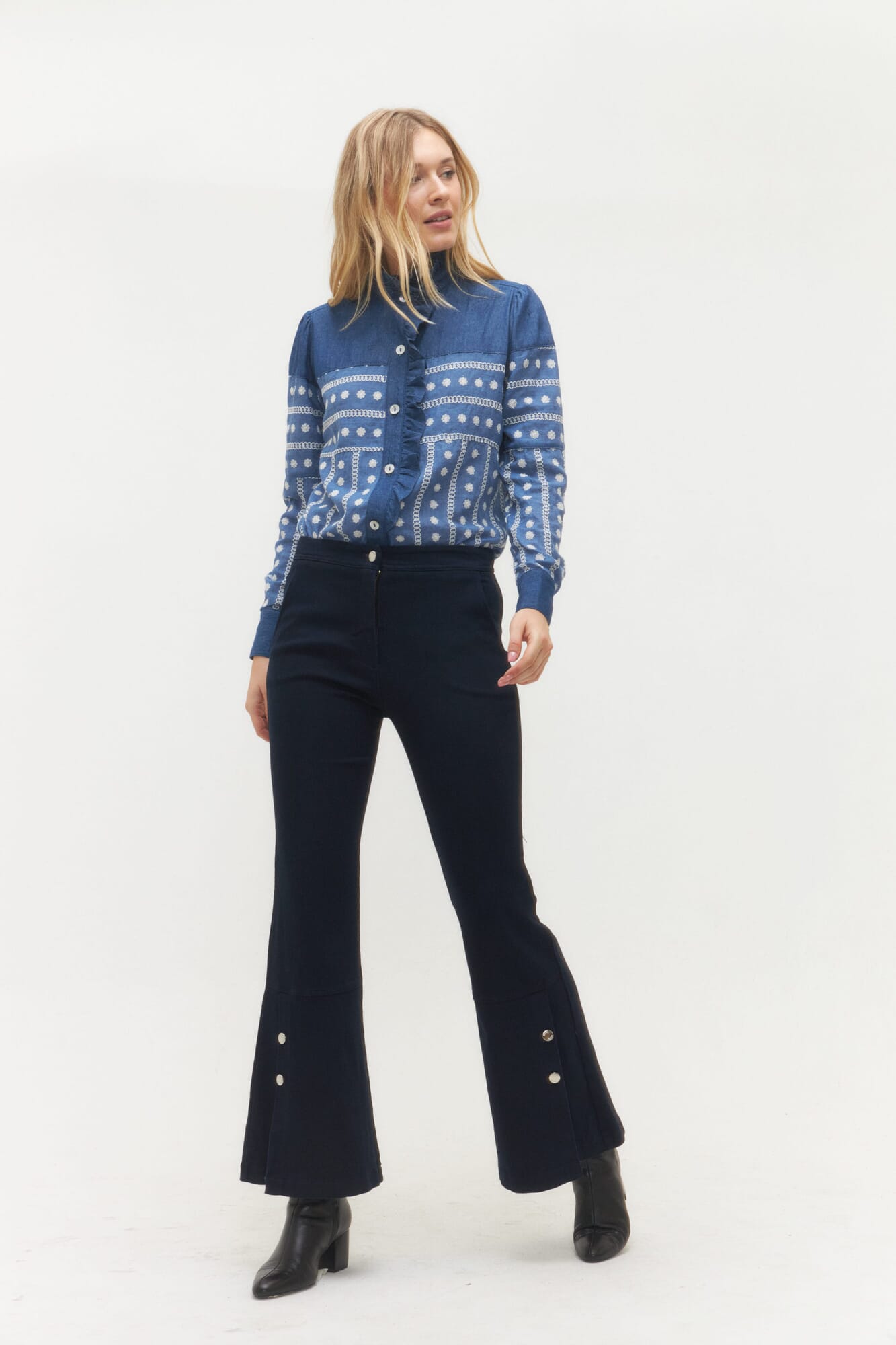 Este pantalón de gabardina elastizada eleva cualquier look con su textura suave y lujosa, perfecta para destacar en eventos especiales o para un estilo refinado en el día a día. Su diseño presenta un corte estratégico en la pierna que añade un detalle moderno y atrevido, fusionando elegancia clásica con una estética contemporánea. De silueta estilizada y caída fluida, este pantalón es ideal para un básico renovado que aporta distinción y personalidad a tu guardarropa.