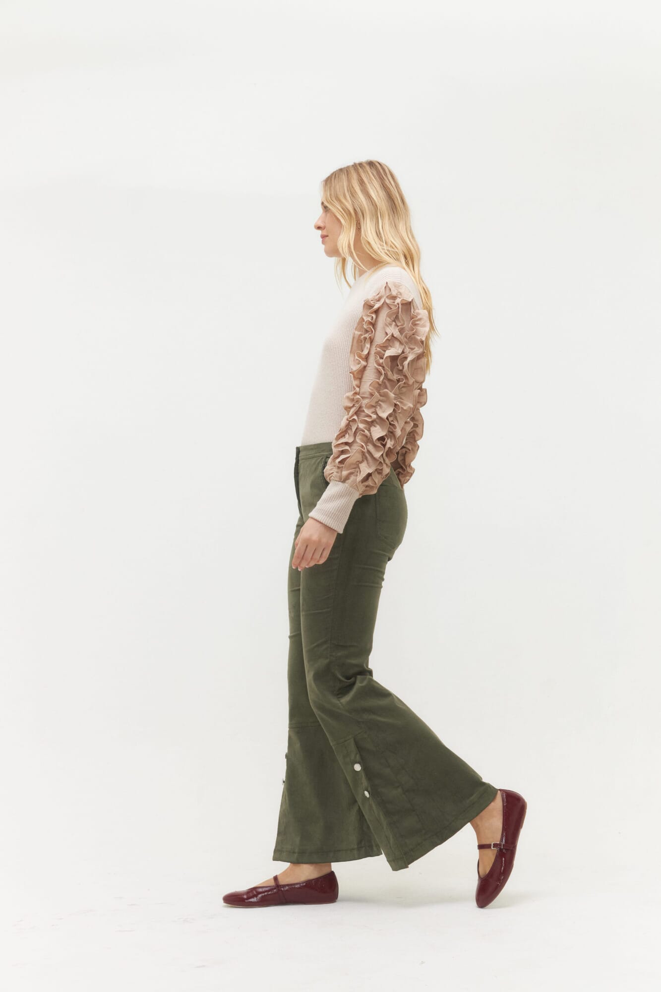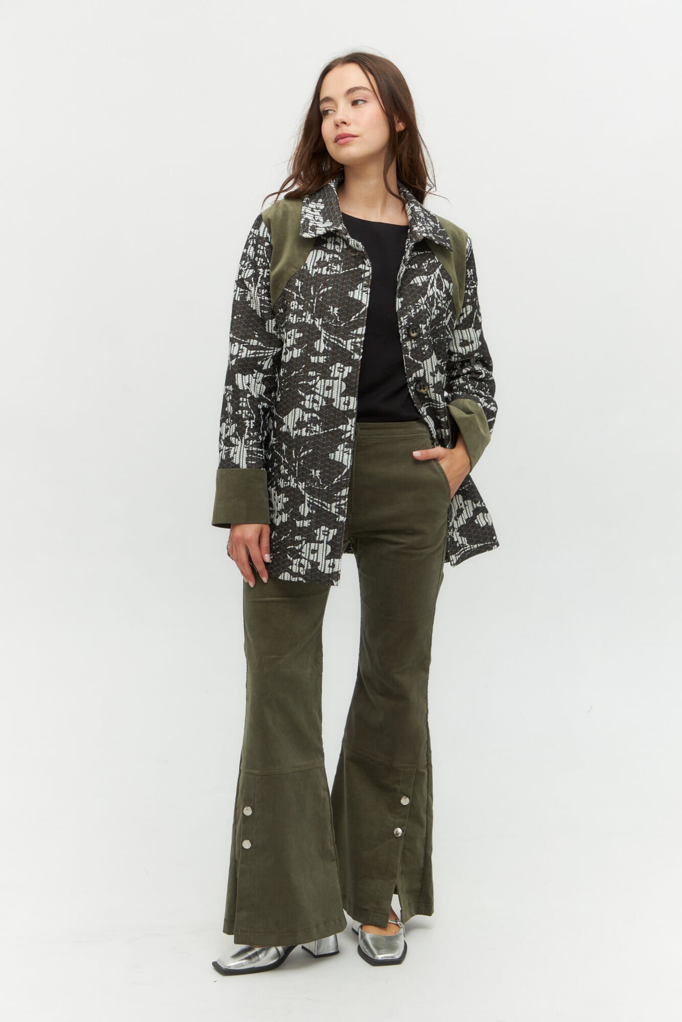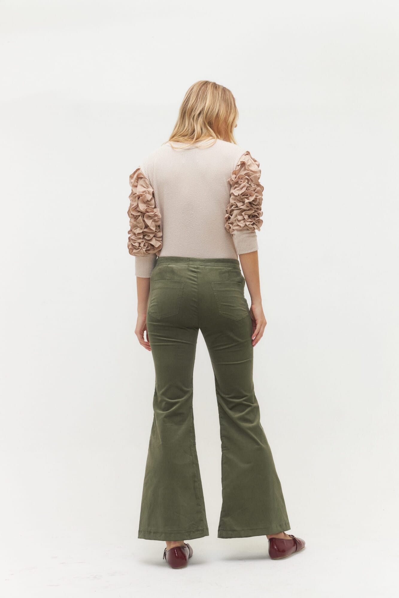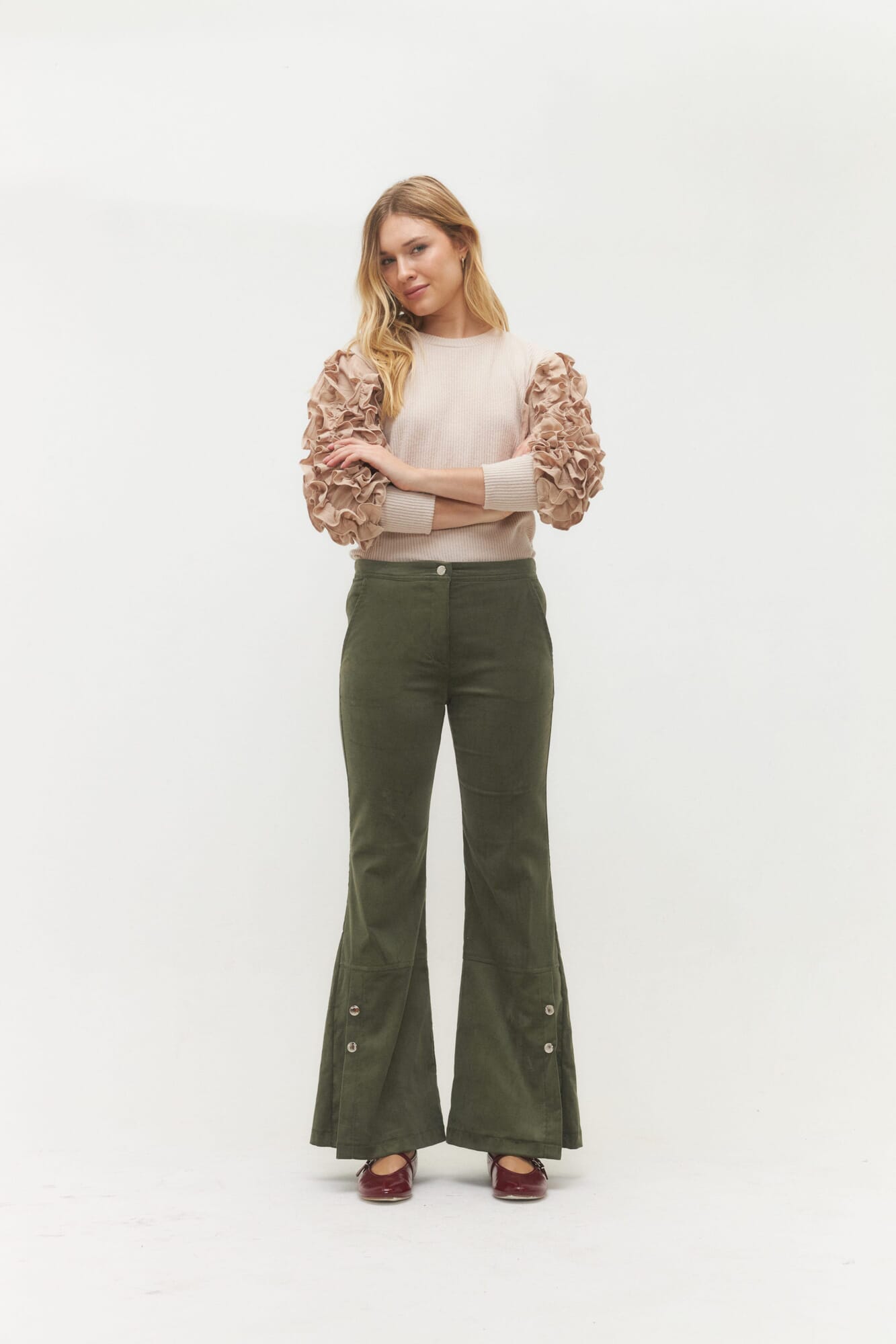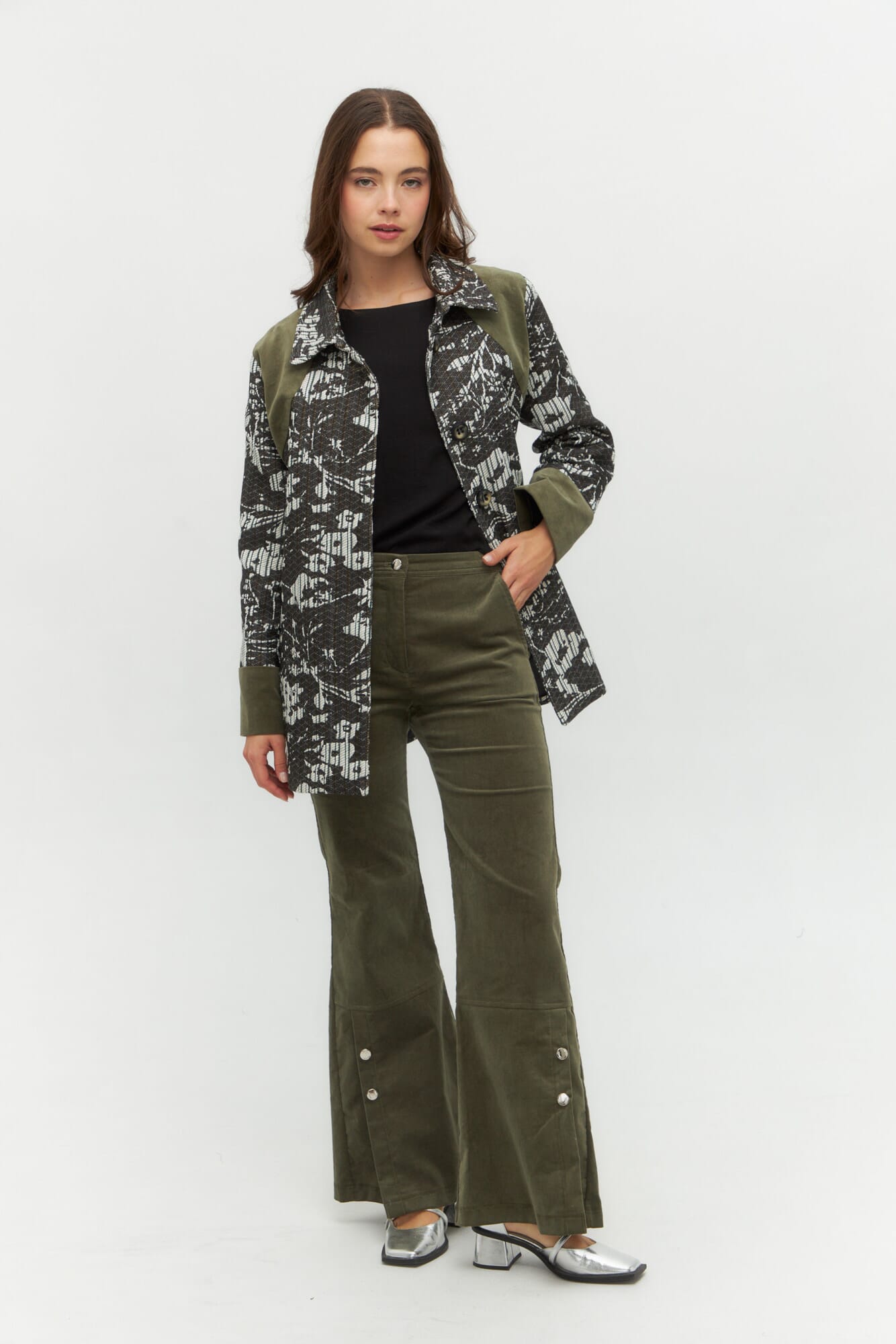 Este pantalón de velvetín eleva cualquier look con su textura suave y lujosa, perfecta para destacar en eventos especiales o para un estilo refinado en el día a día. Su diseño presenta un corte estratégico en la pierna que añade un detalle moderno y atrevido, fusionando elegancia clásica con una estética contemporánea. De silueta estilizada y caída fluida, este pantalón es ideal para un básico renovado que aporta distinción y personalidad a tu guardarropa.