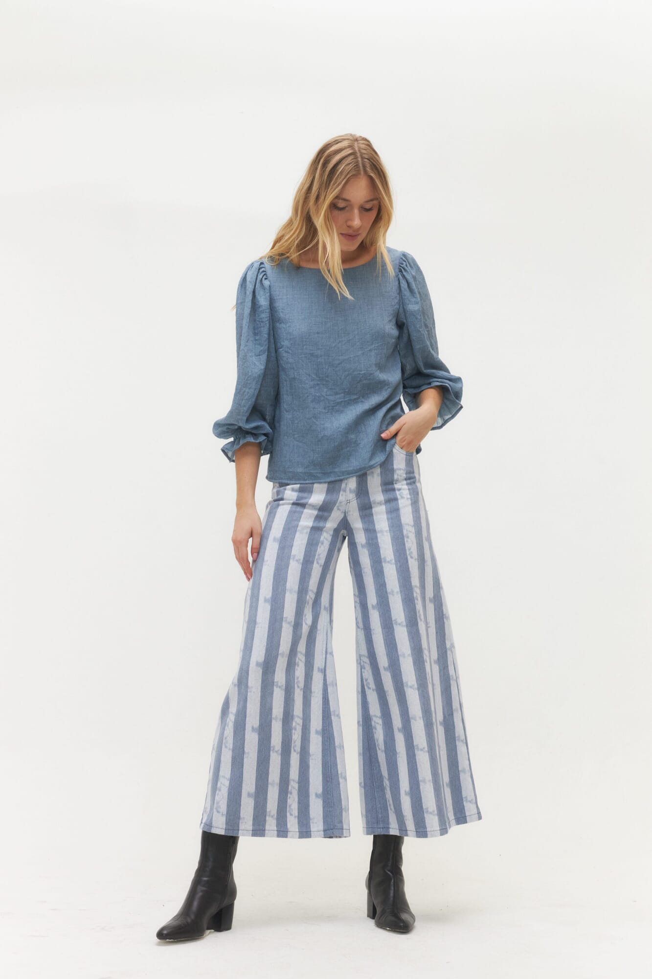 Este jean es una reversión del Atolón, pero que se sumaron las rayas. No necesitas nada más, este pantalón lo es todo.