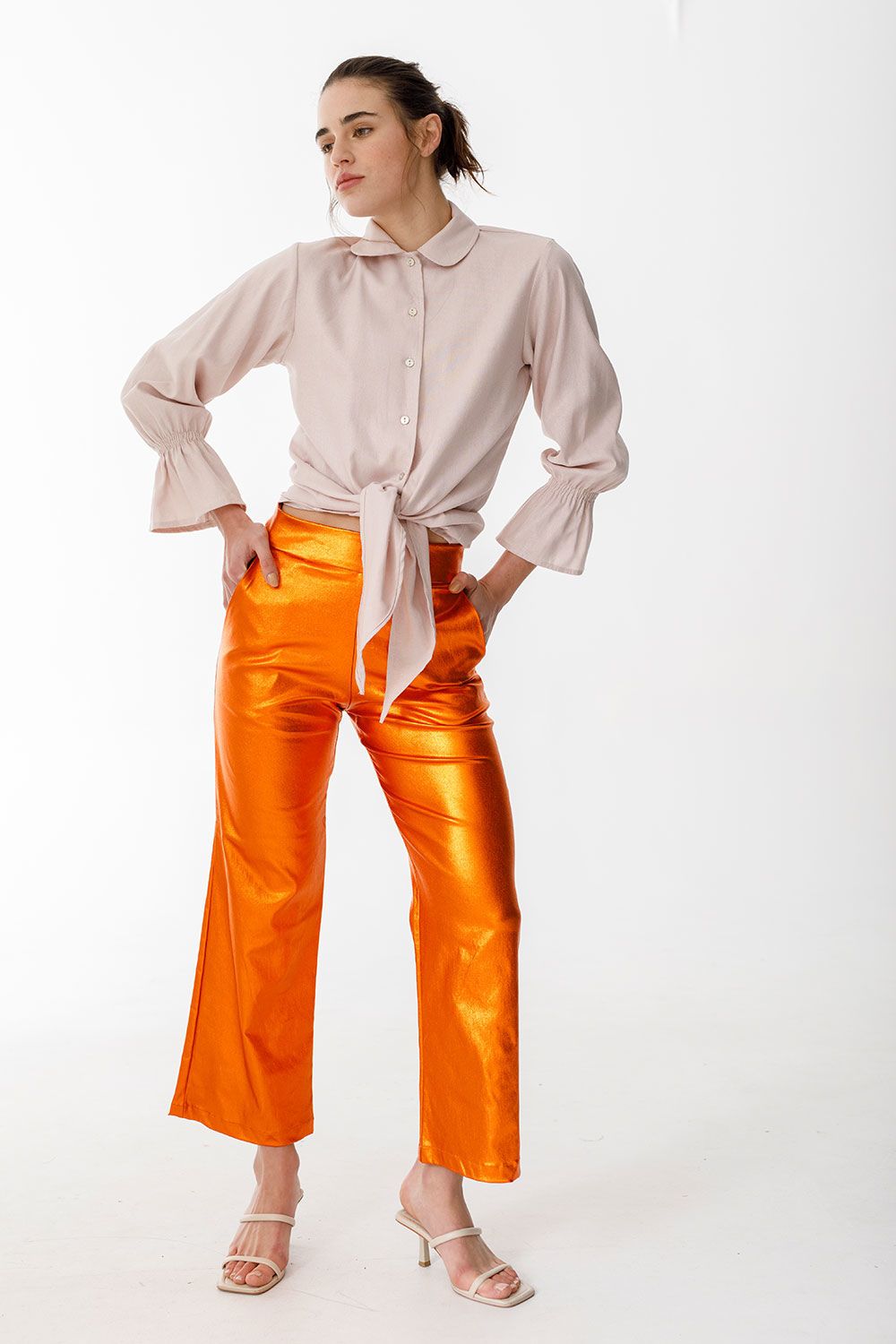 Pantalón recto de tiro medio, wide leg fitting sin cortes. Un pantalón ideal para una ocasión especial