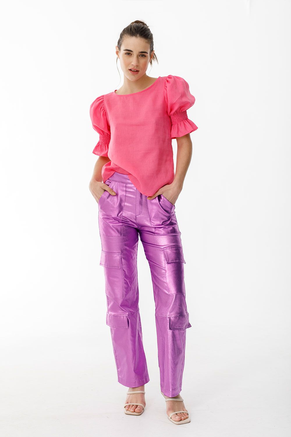 Pantalón cargo con múltiples bolsillos, wide leg fitting y tiro medio. Un must de esta temporada.