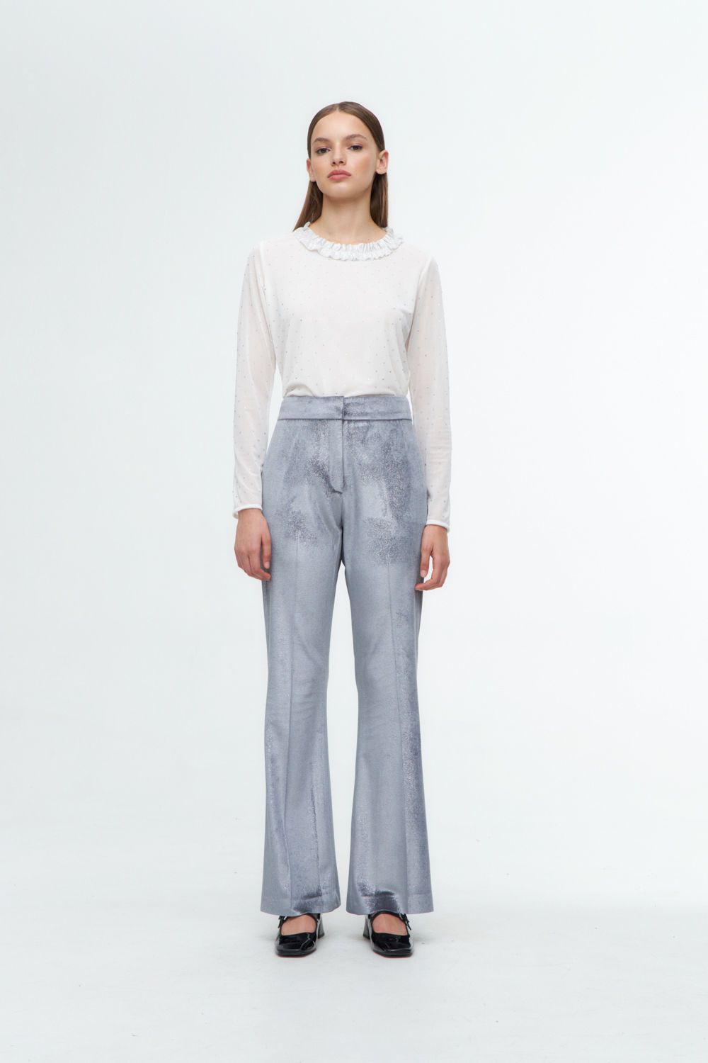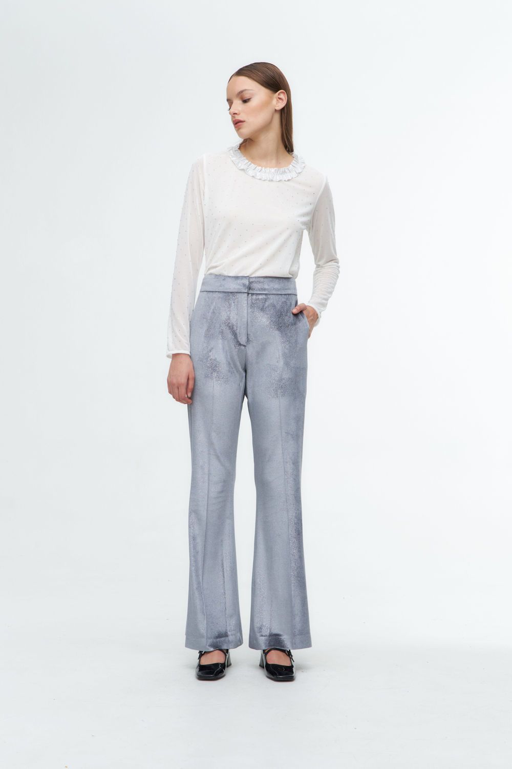 El pantal贸n Soleil es una pieza deslumbrante, confeccionada en una tela de terciopelo con lurex. Su acabado brillante y llamativo lo convierte en una opci贸n elegante y sofisticada para cualquier ocasi贸n. Este pantal贸n es el compa帽ero perfecto para el blazer Soleil, creando un conjunto coordinado que destaca por su estilo y glamour.