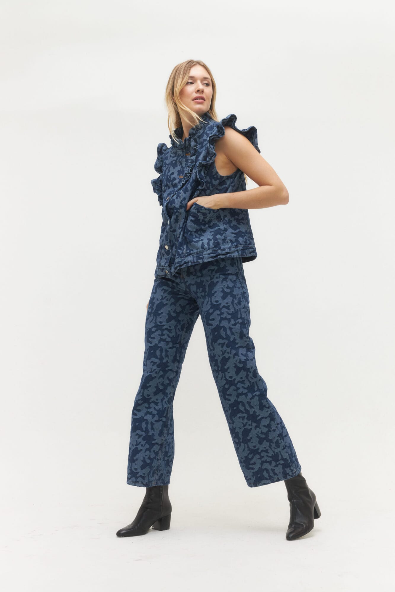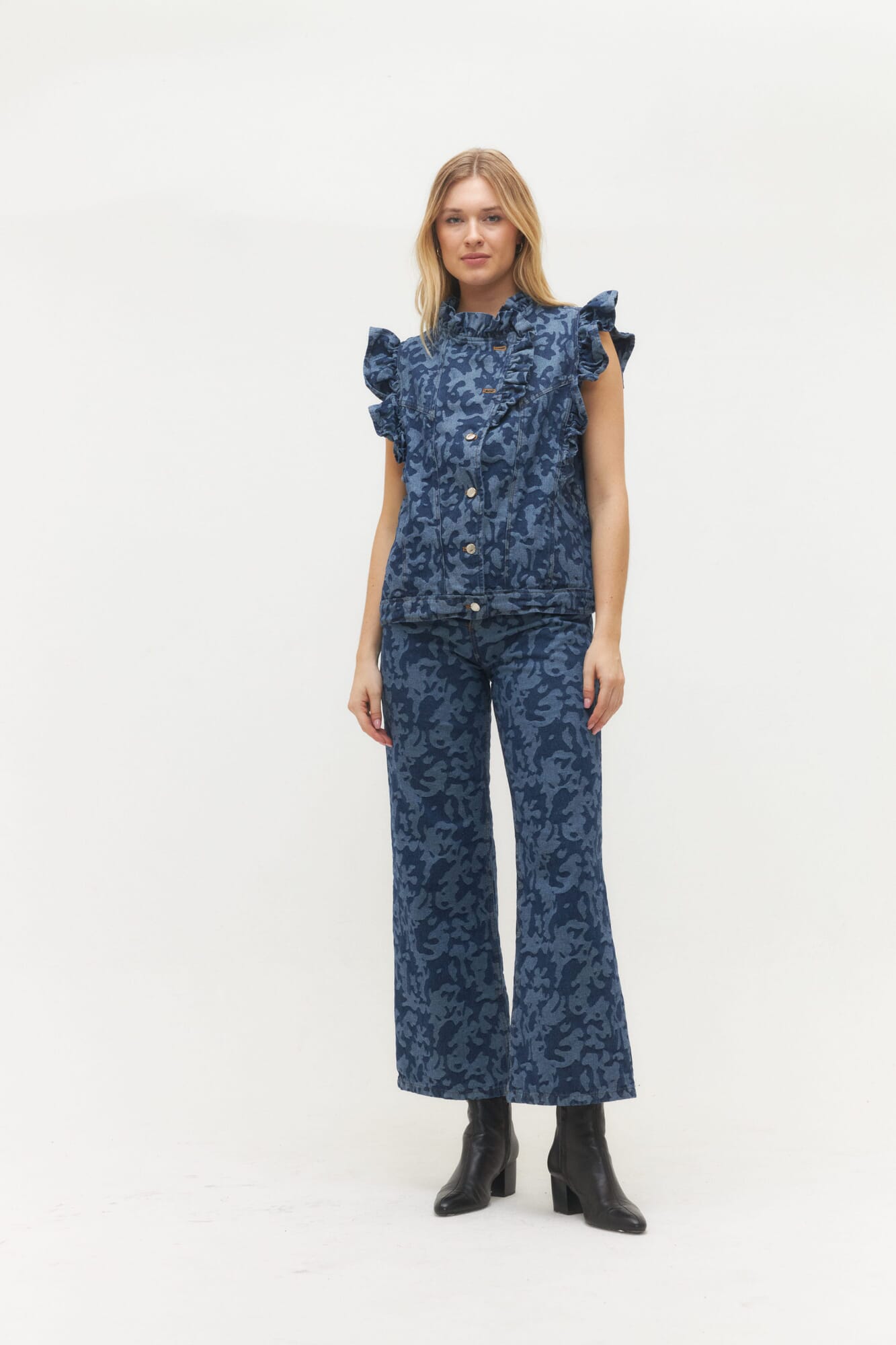 Este pantalón hace juego con el chaleco, siguiendo el mismo print camuflado. Con un calce increíble, se adapta a cualquier look.