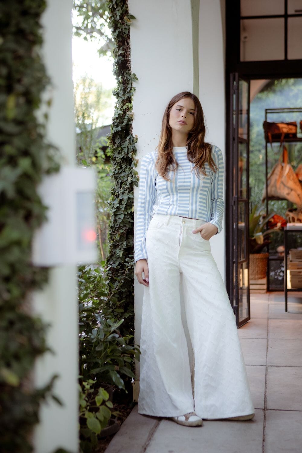 Remera de escote redondo con cortes en el cuerpo y manga larga en diferentes direcciones de rayas, creando un patrón único y divertido. Disponible en varios colores, es súper cómoda y alegre, perfecta para un look casual y elegante.
