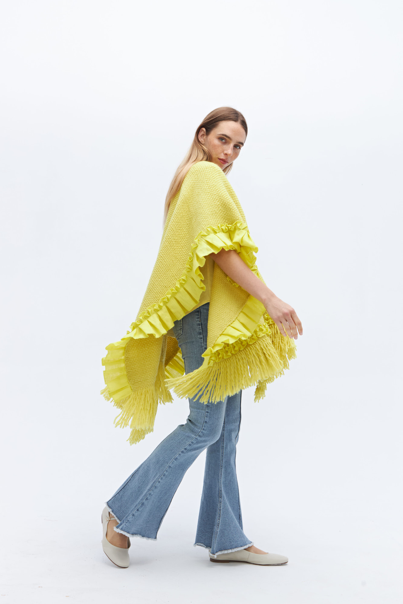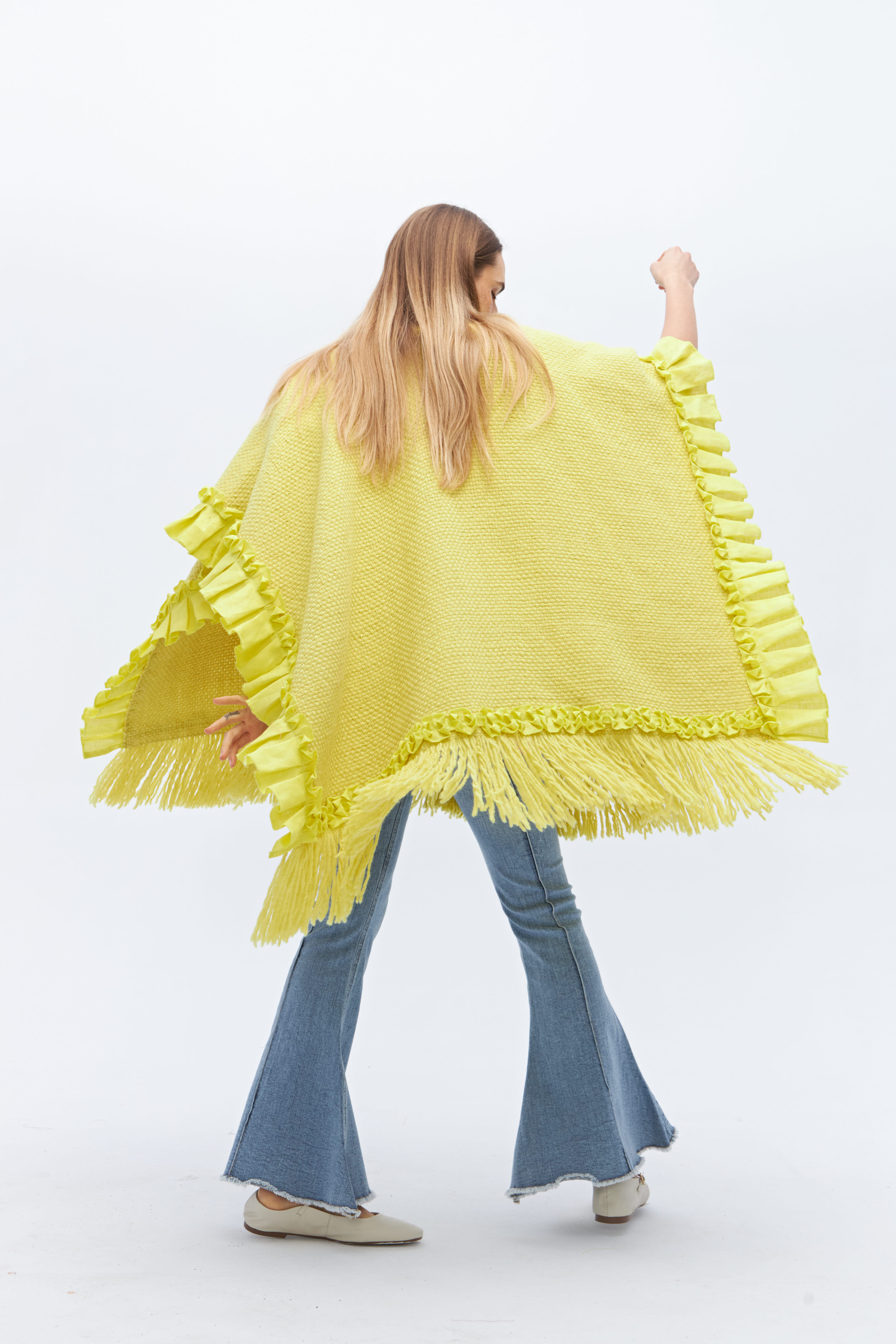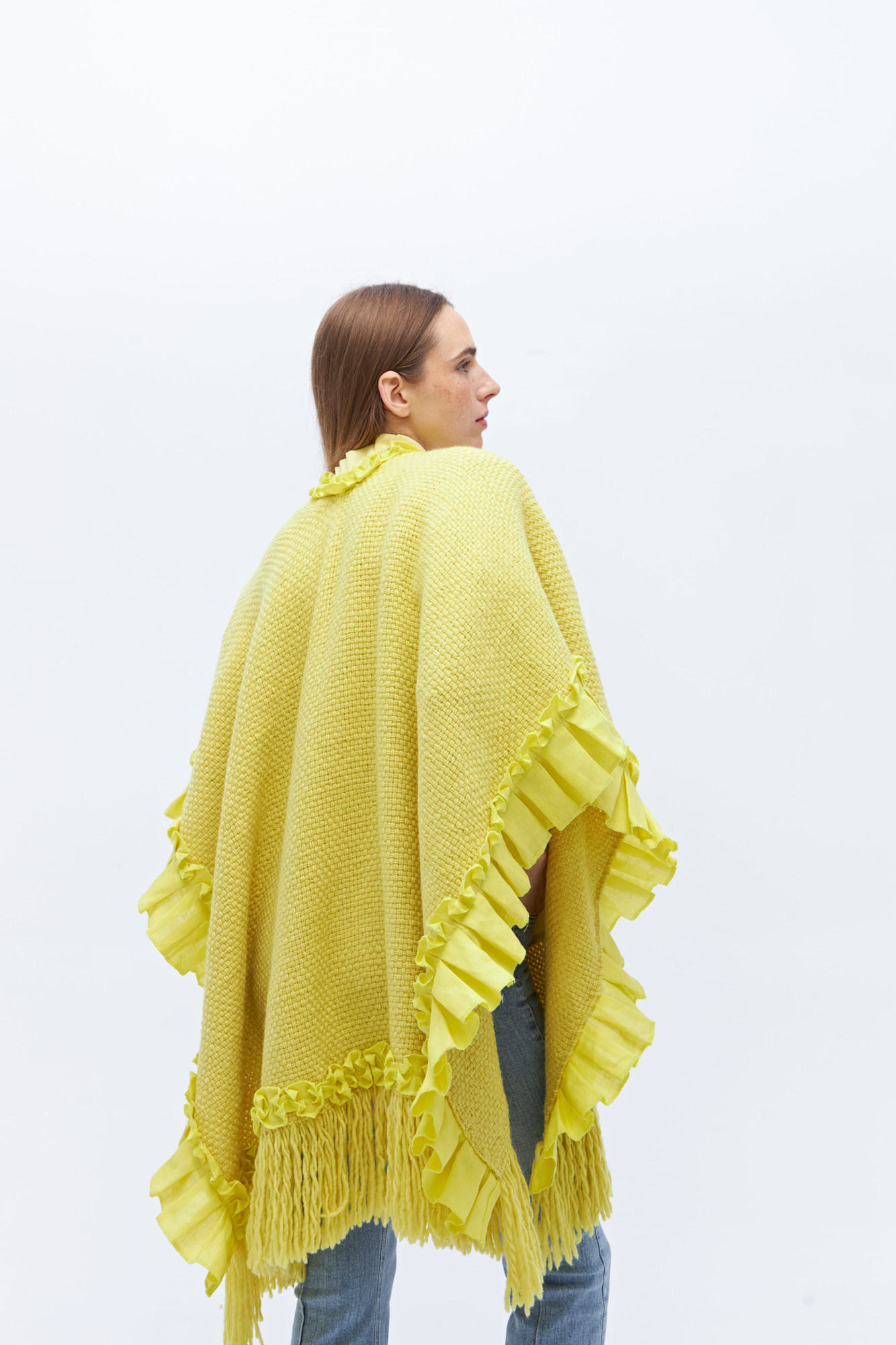 Una verdadera joya de edición limitada: la ruana clásica reversionada por Margo. Tejida en 100% lana merino con sutiles detalles de lino, es la prenda que redefine la versatilidad. Perfecta para acompañarte en cualquier momento del día o de la noche, siempre con estilo y calidez.