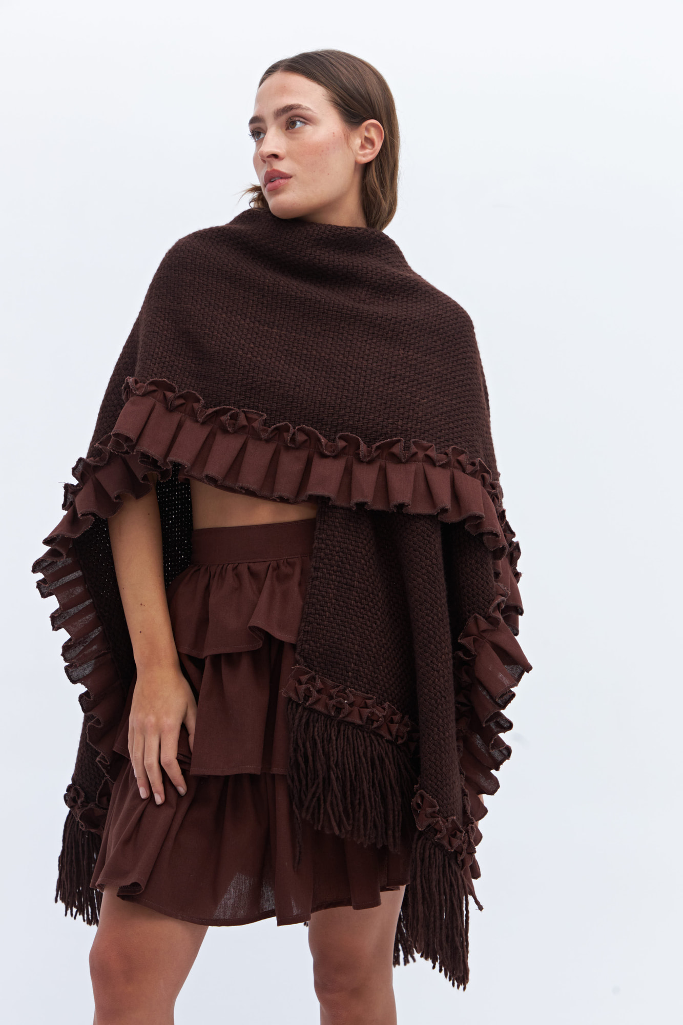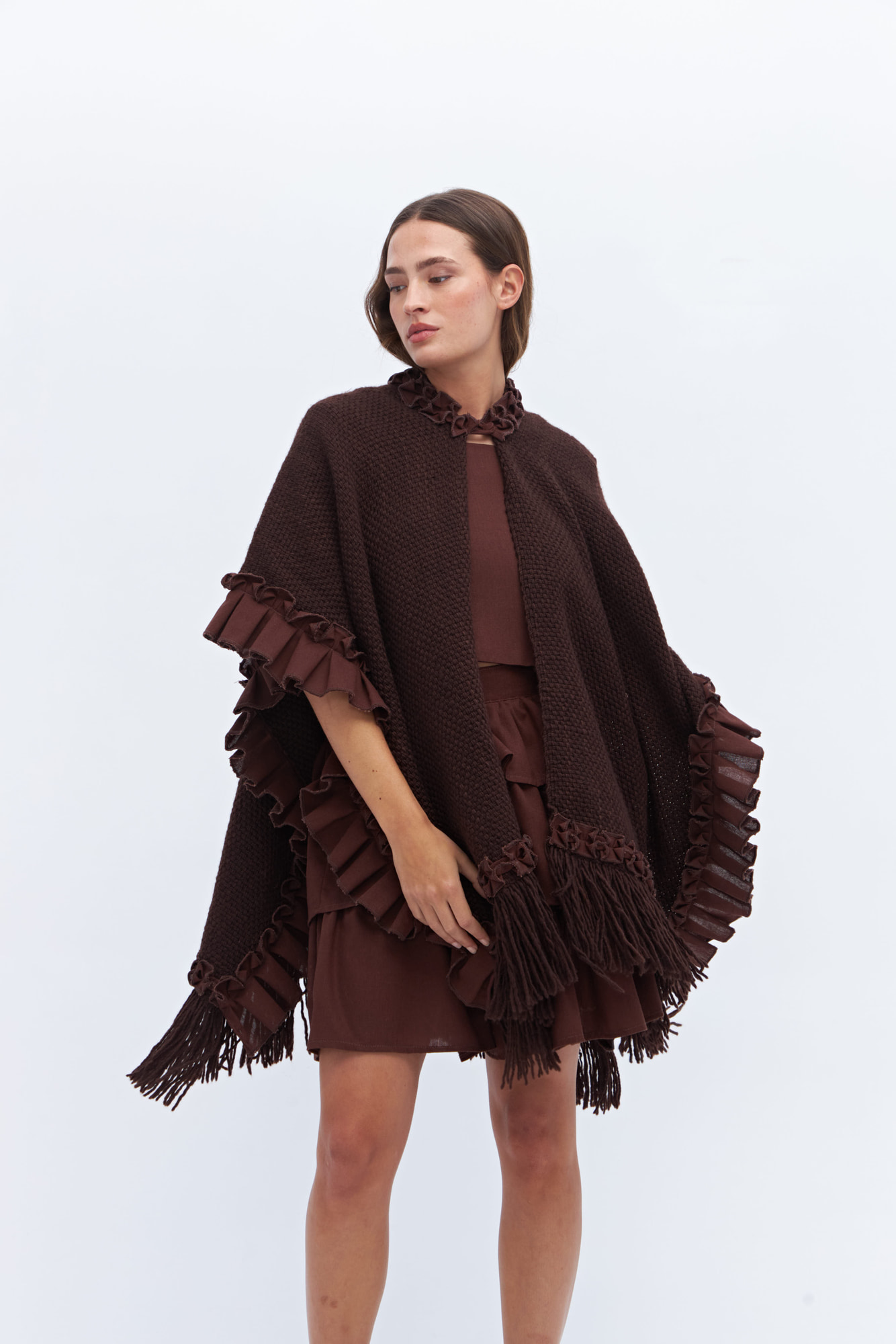 Una verdadera joya de edición limitada: la ruana clásica reversionada por Margo. Tejida en 100% lana merino con sutiles detalles de lino, es la prenda que redefine la versatilidad. Perfecta para acompañarte en cualquier momento del día o de la noche, siempre con estilo y calidez.