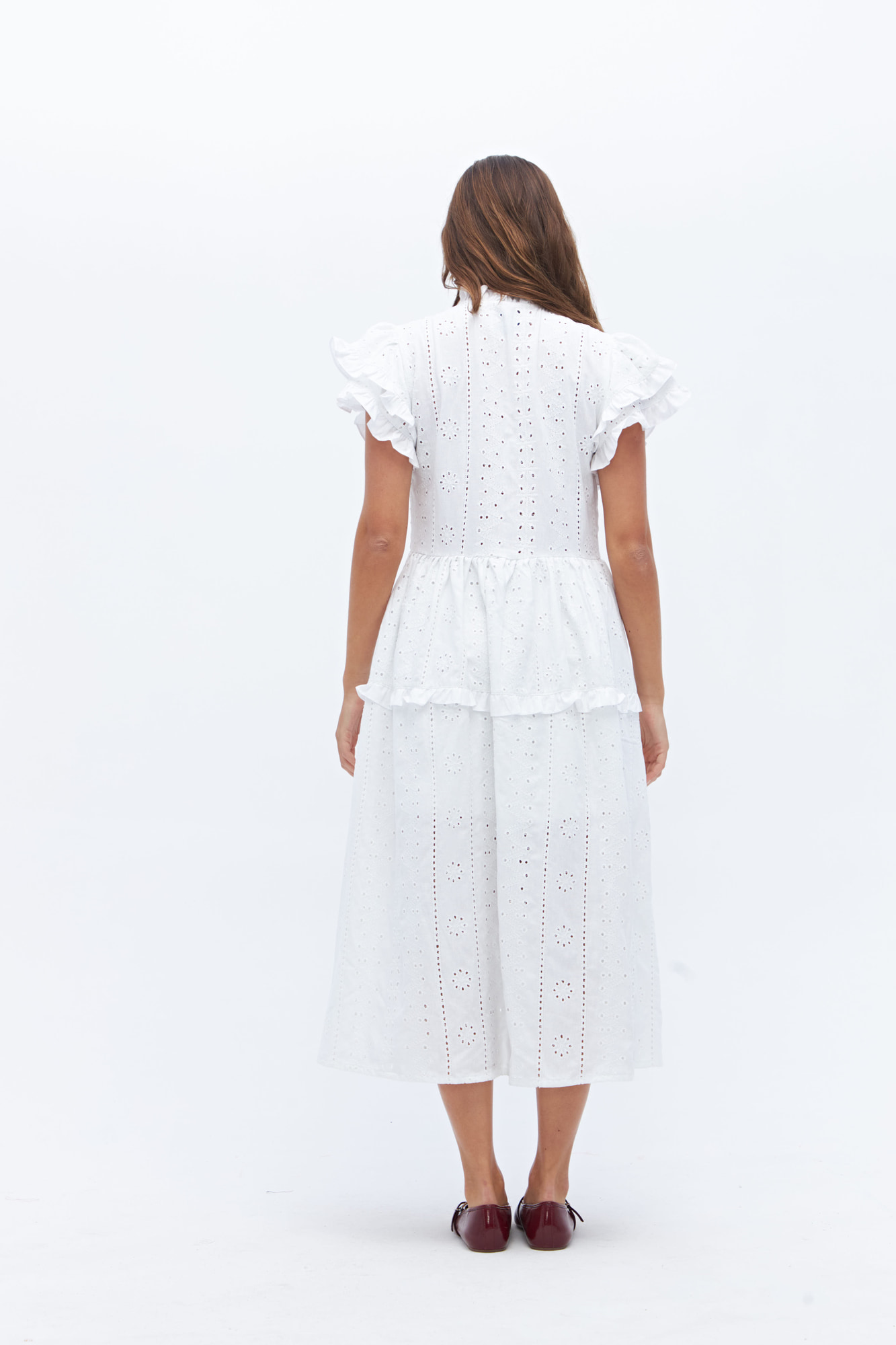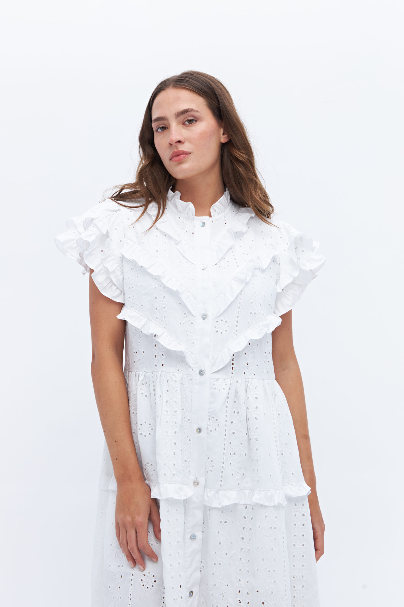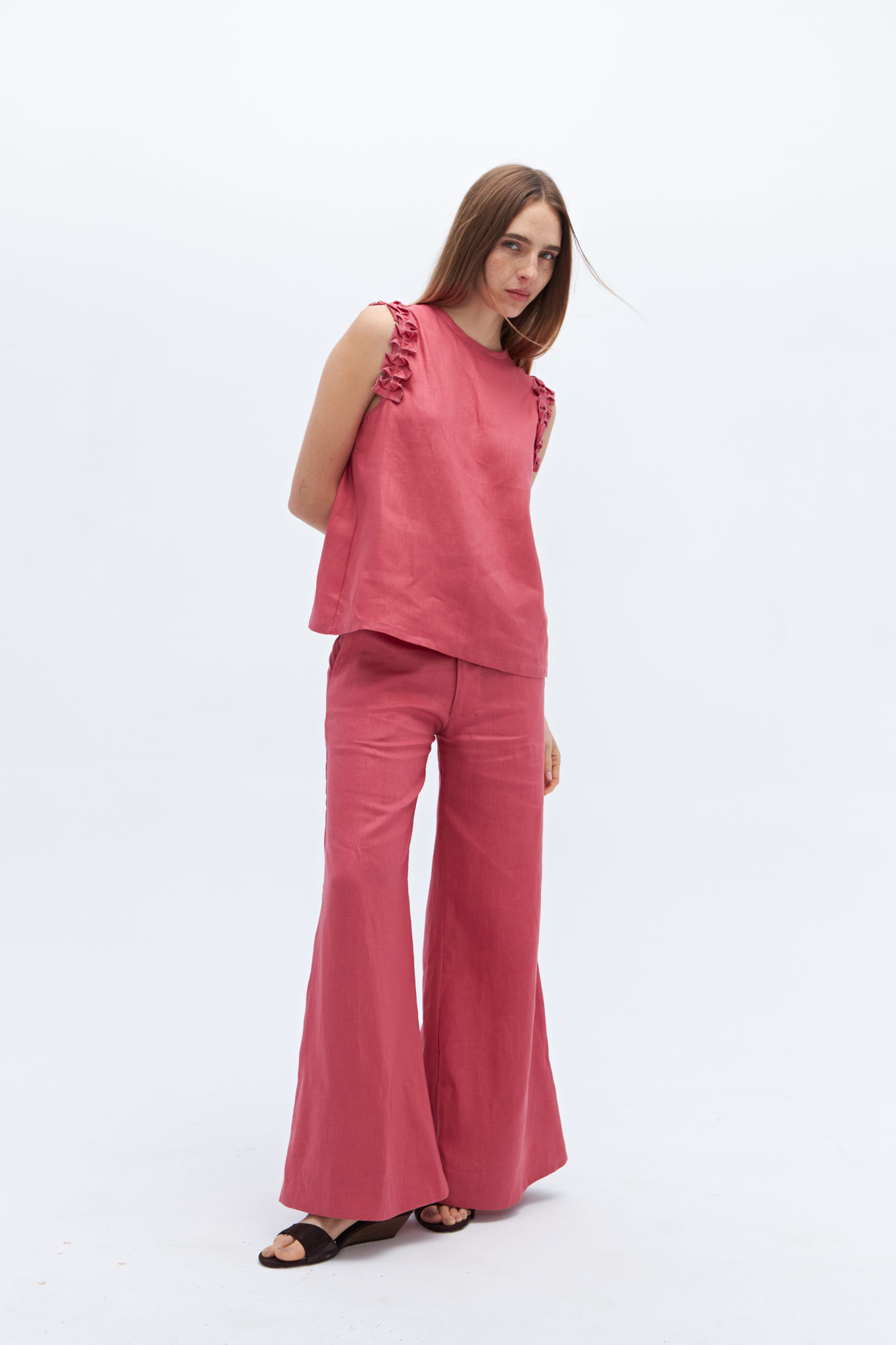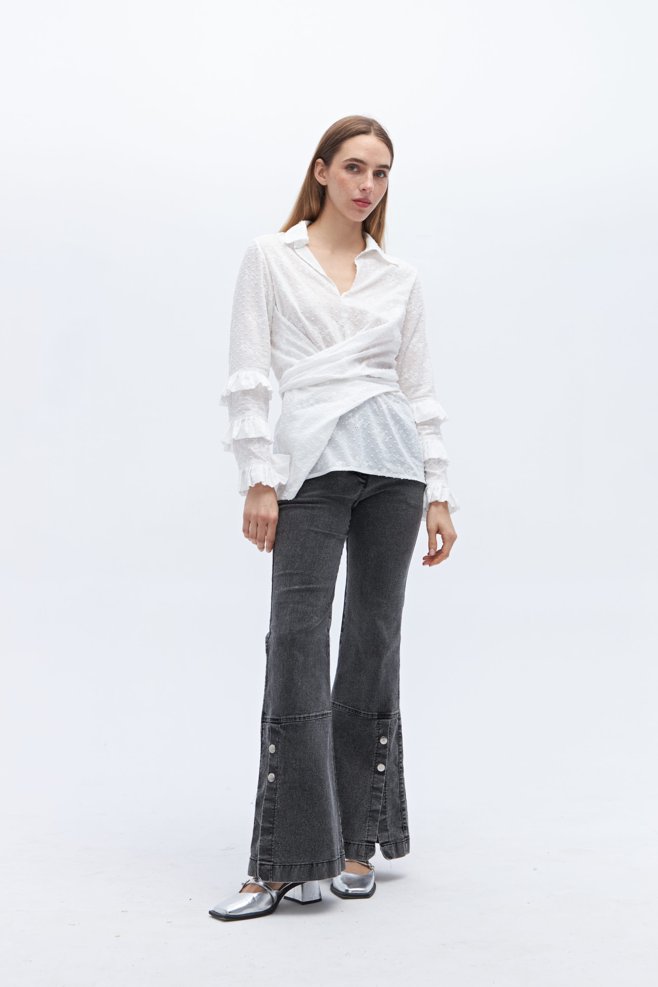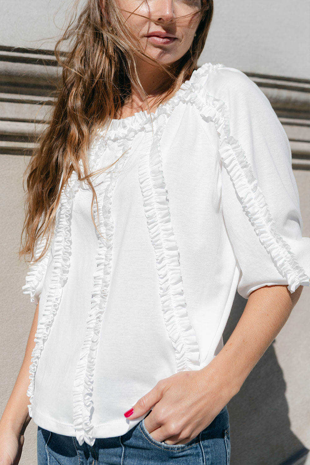 El Vestido Peonia se distingue por su silueta amplia y fluida, realzada con delicados volados en las mangas y líneas decorativas que acompañan la forma. Un diseño que une comodidad y estilo, pensado para destacar con un aire femenino y actual.